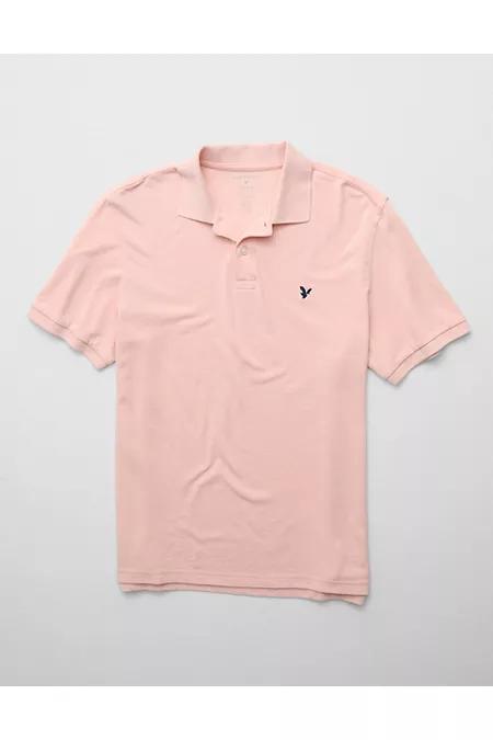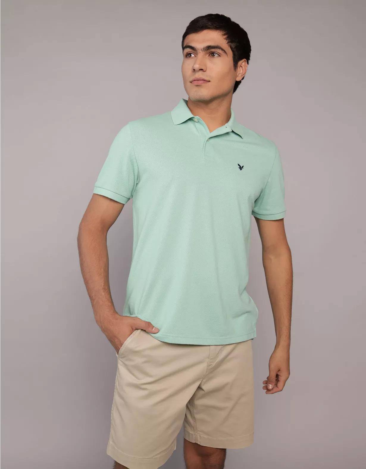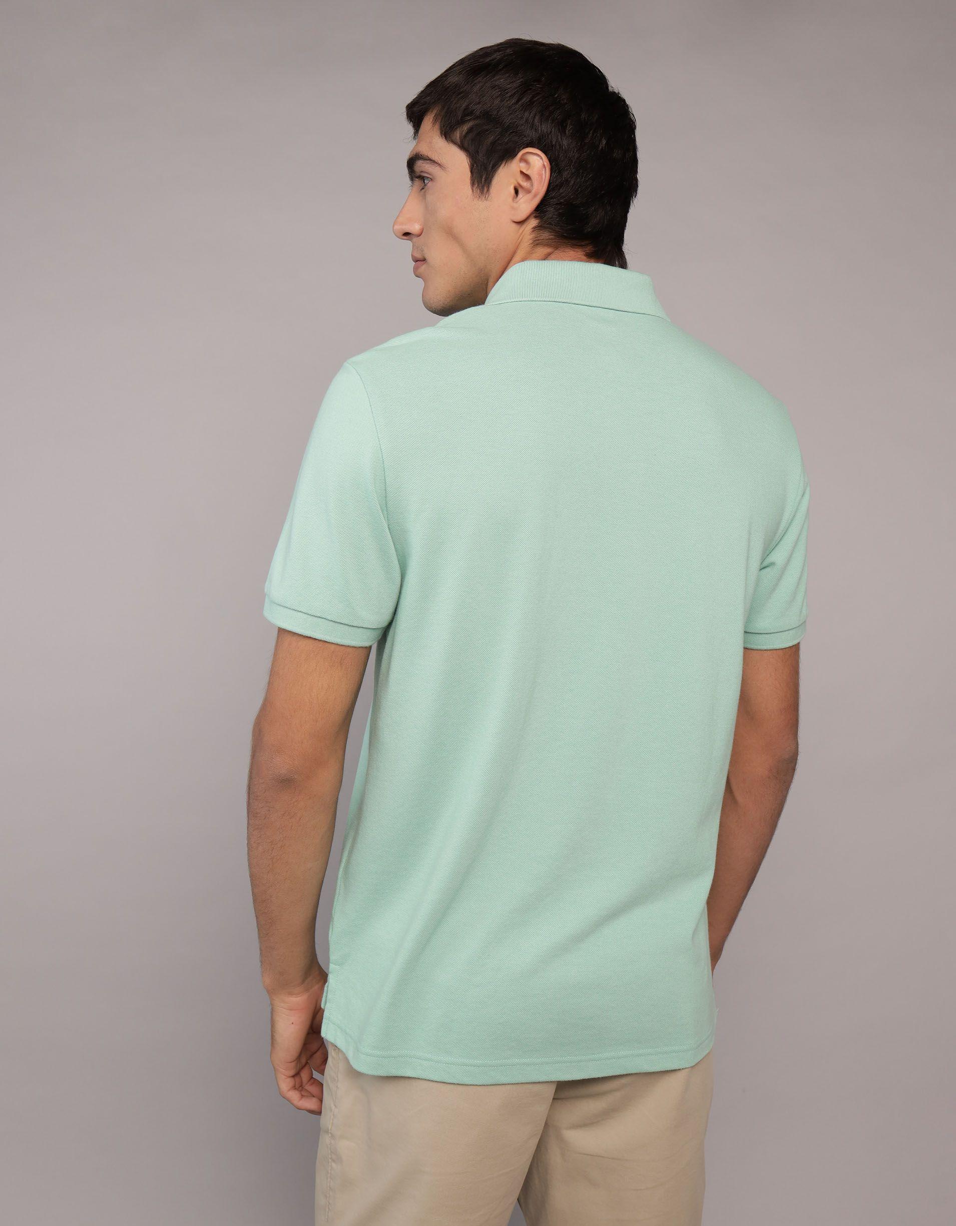 Soft cotton-blend/Collared neck with button placket/Small embroidered eagle logo