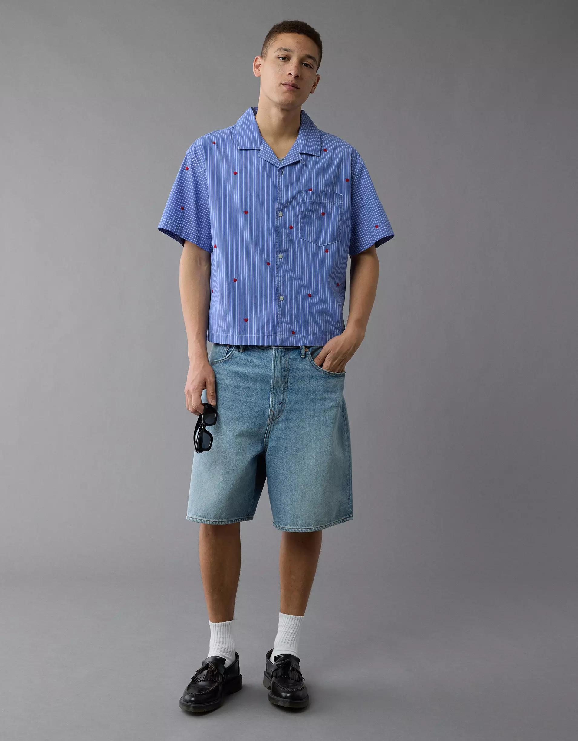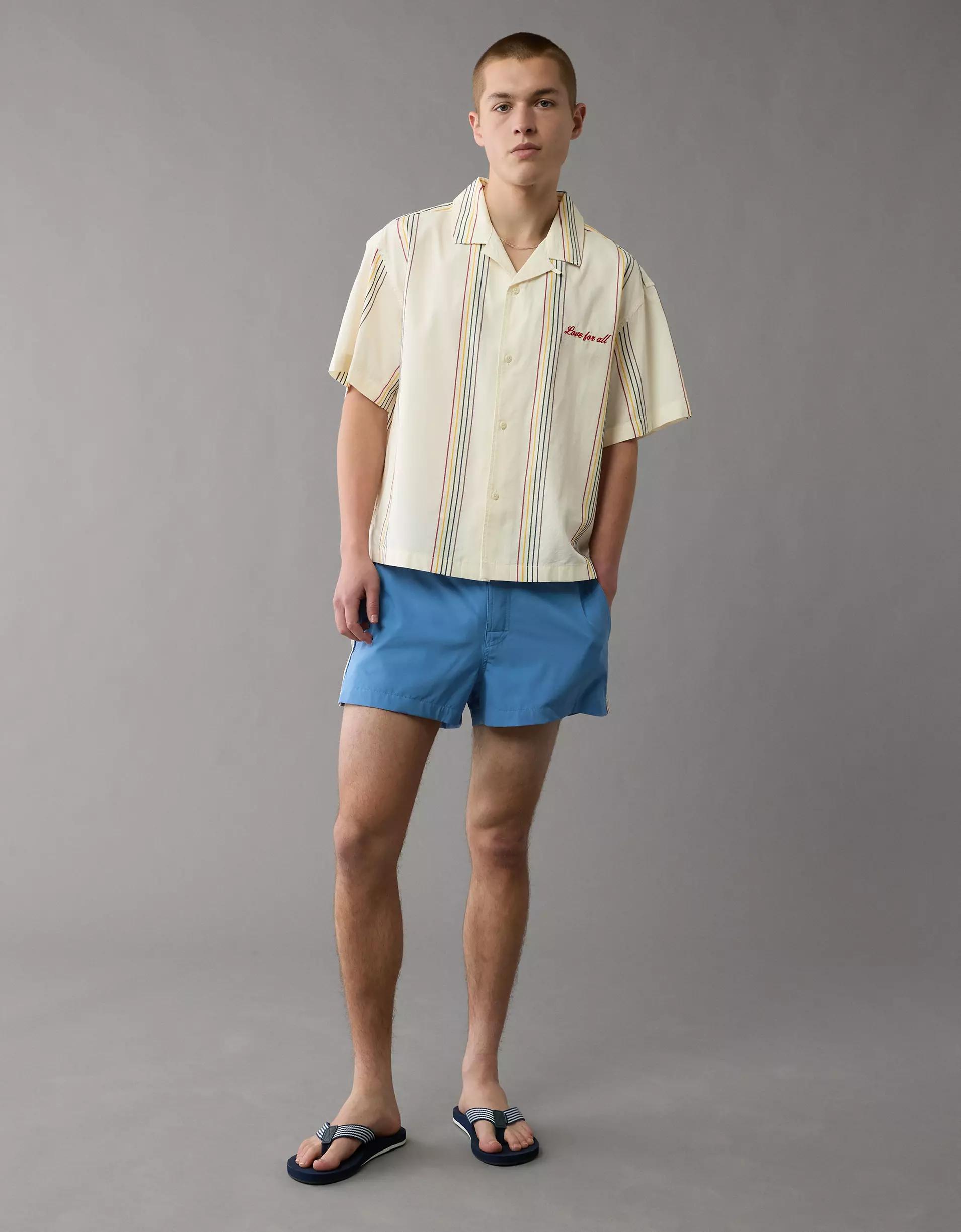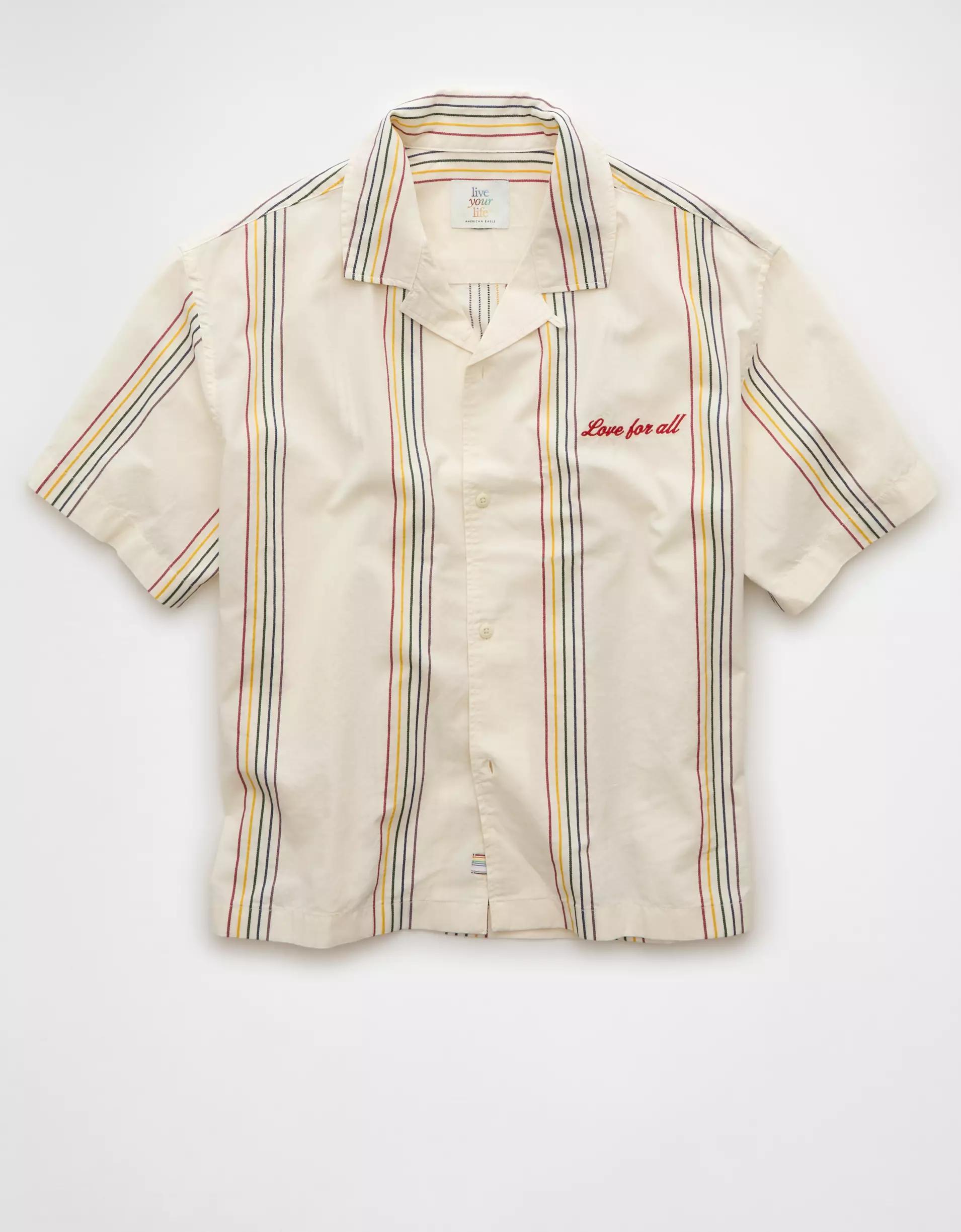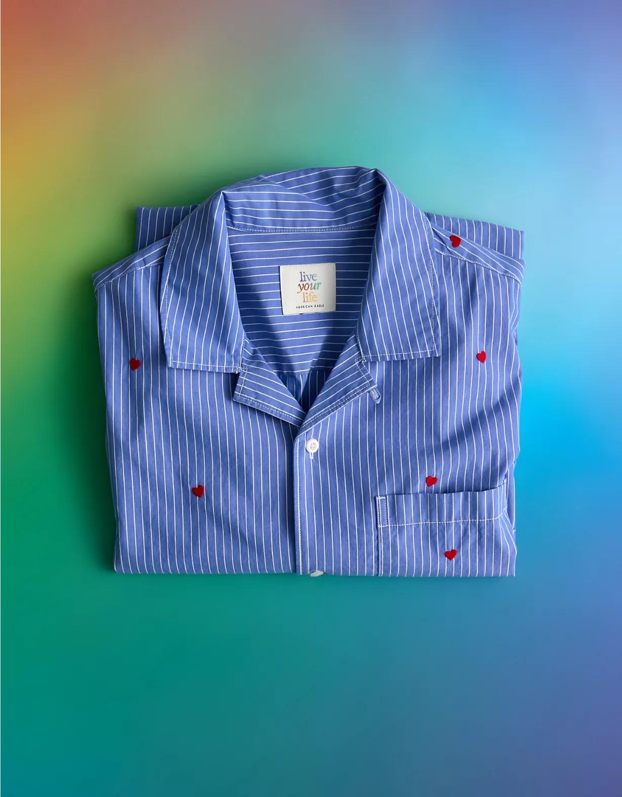 AE Pride Poolside Embroidered Striped Button-Up Shirt