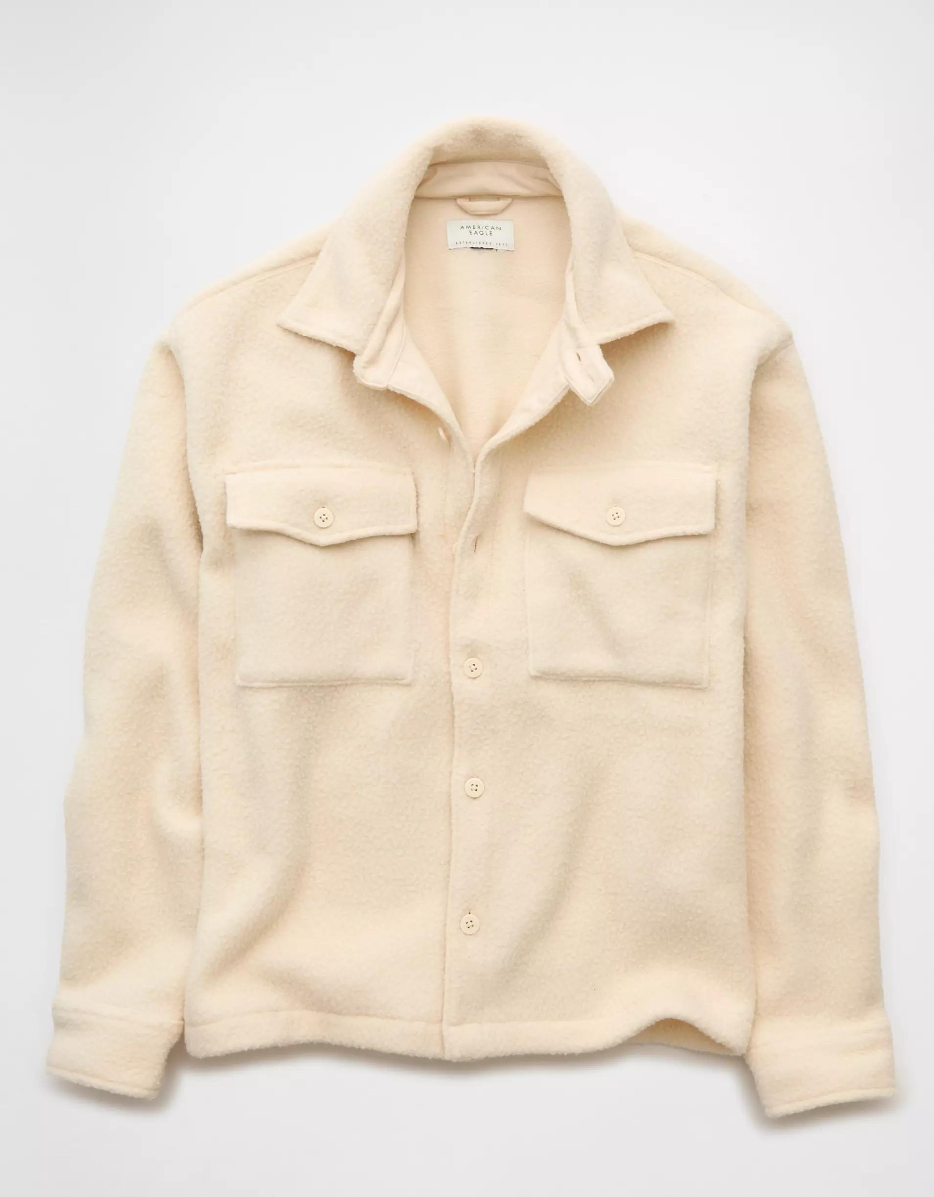 Need some more cozy in your life? Look no further than the button-up sherpa fleece shacket, designed to comfortably fit over a sweatshirt base layer.