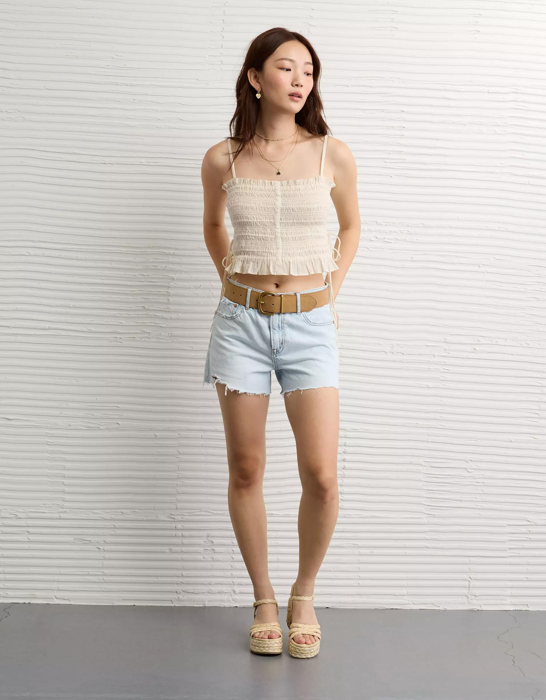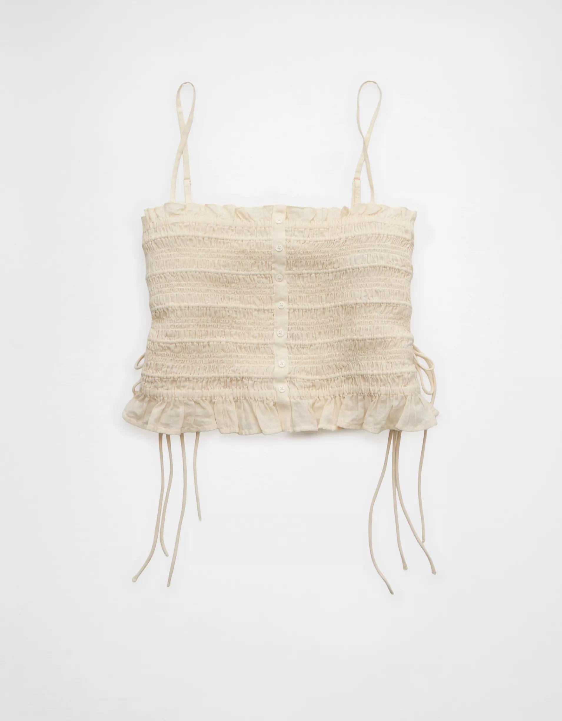 AE Smocked Tie Side Button-Up Tank Top