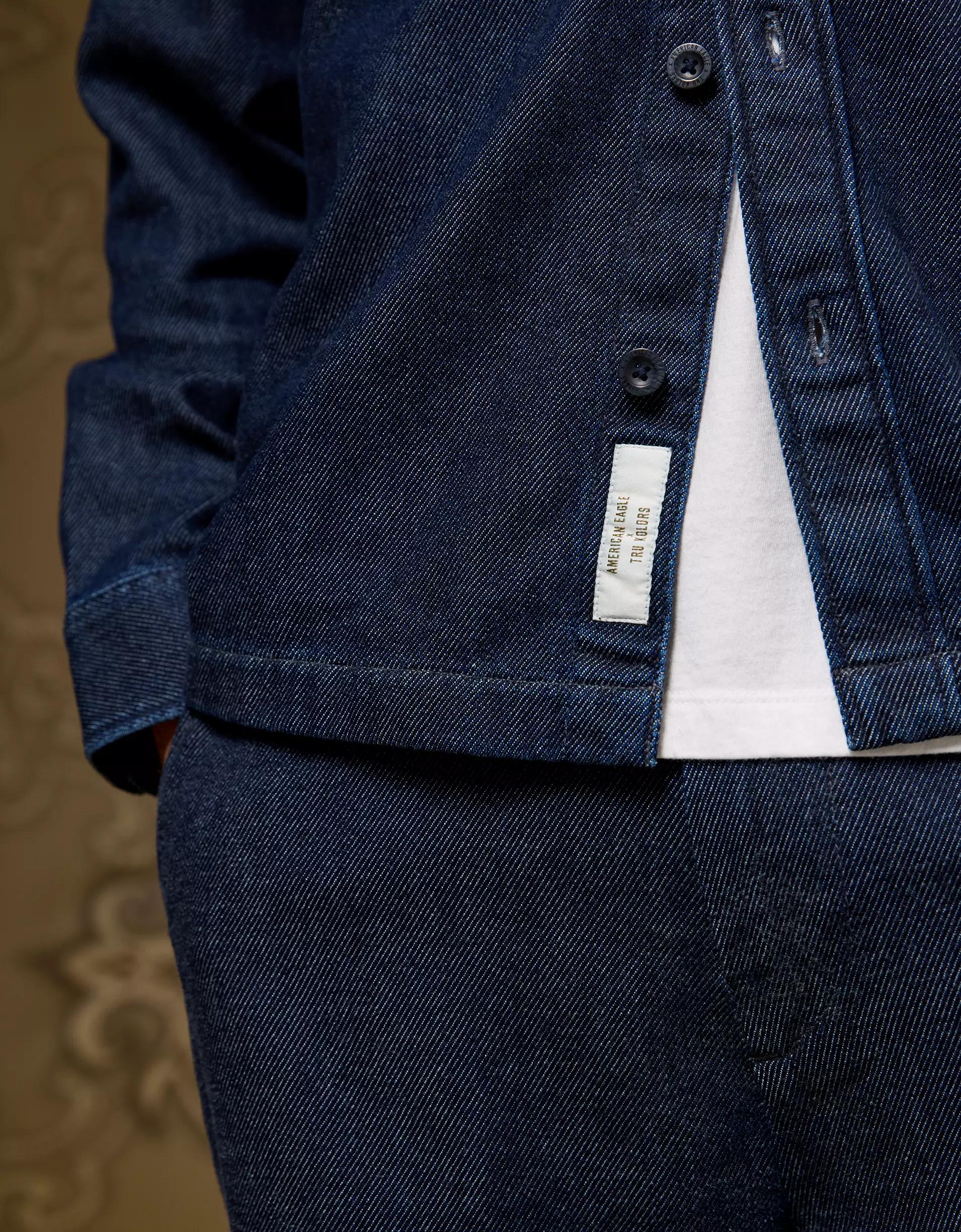 Designed to look like denim, this ultra-soft, relaxed fit chenille shirt features signature "AE x Tru Kolors" buttons for a signature look.