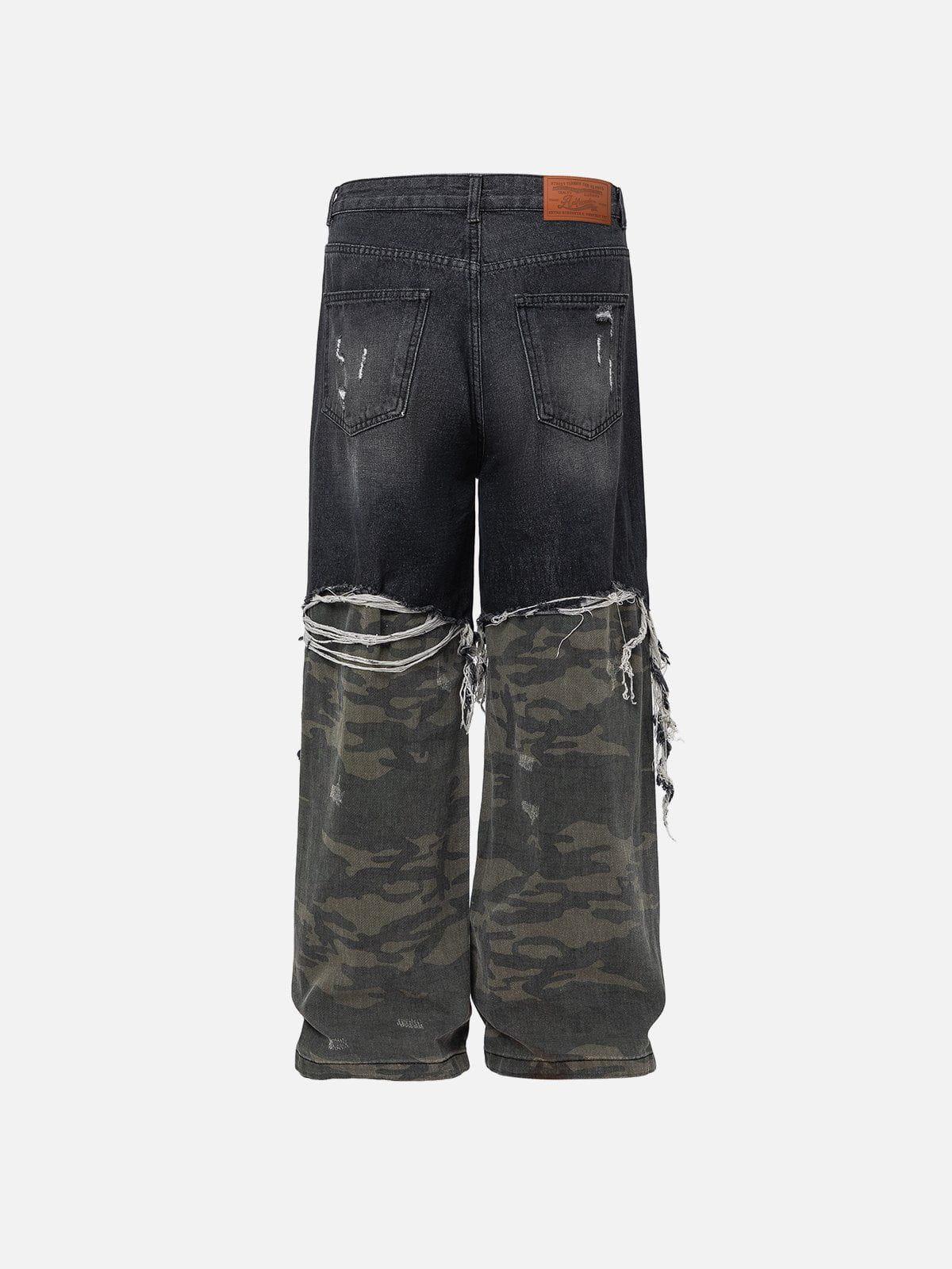 The unique camouflage design adds a stylish edge, while the distressed details create a rugged, worn-in look. The two-layer construction ensures durability and comfort, making these jeans a must-have for any fashion-forward individual. Material: 100% Cotton. Clothing details: Two Layer. SIZE GUIDE