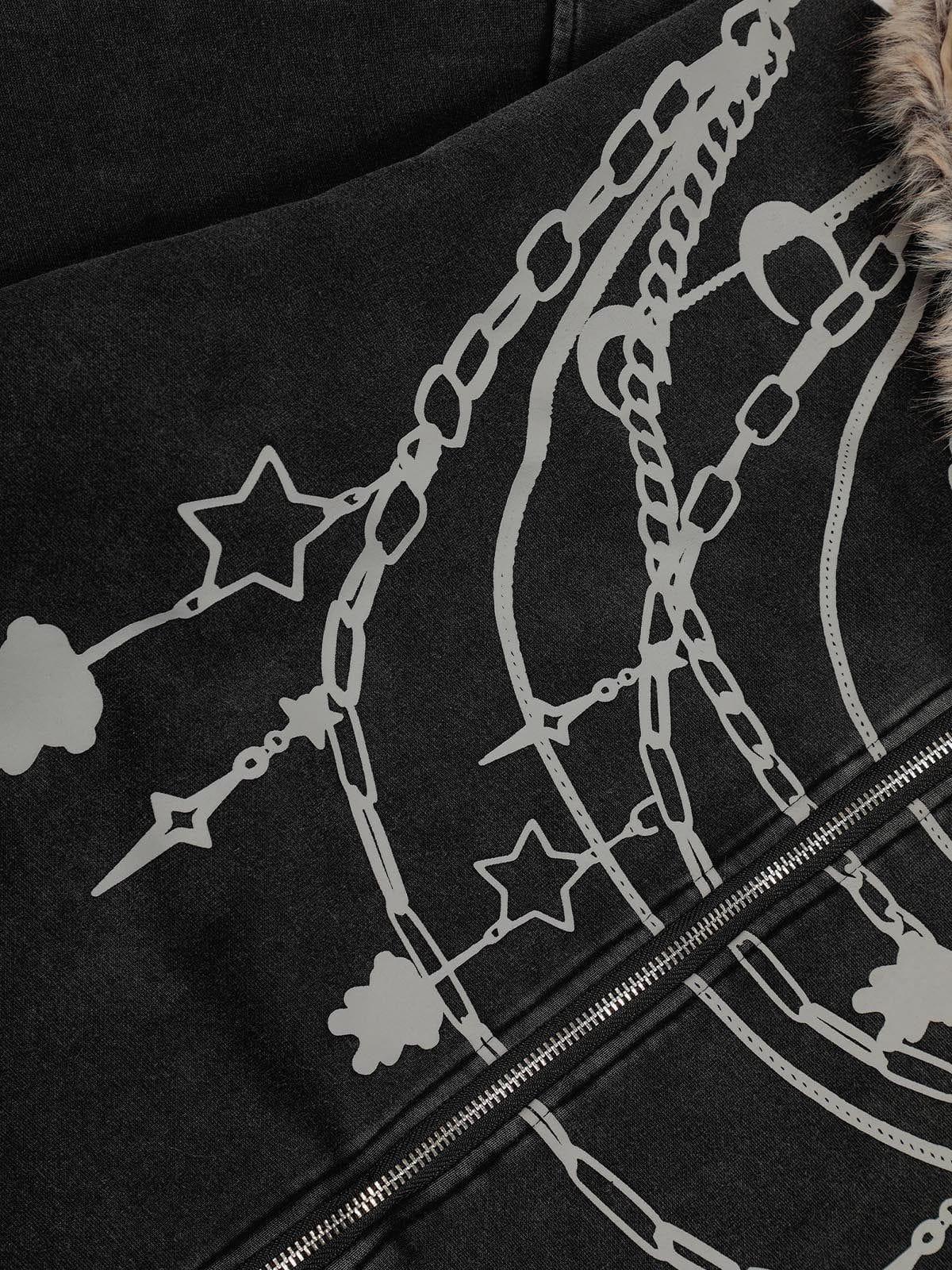 Aelfric Eden Chain Print Faux Fur Collar Zip Up Hoodie