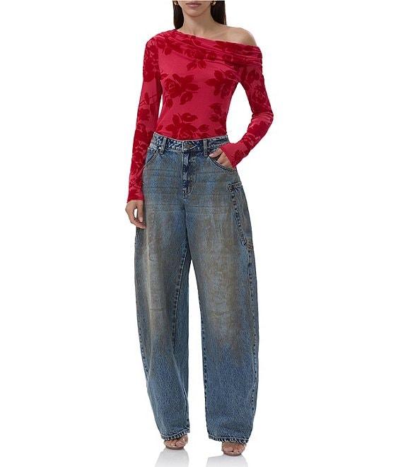 From AFRM, this top features: Flocked mesh fabrication Floral pattern Off-the-shoulder neckline Long sleeve Pull-over construction Fitted silhouette Approx. 23.63" length Self: polyester/spandex Flocking: nylon/other fibers Dry clean Imported.