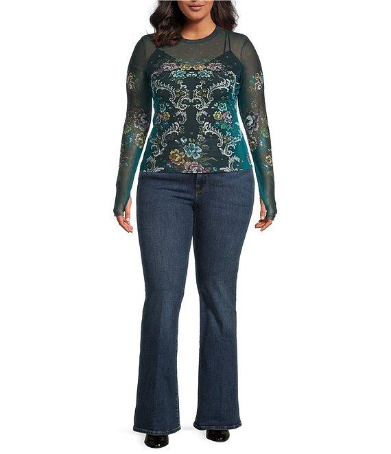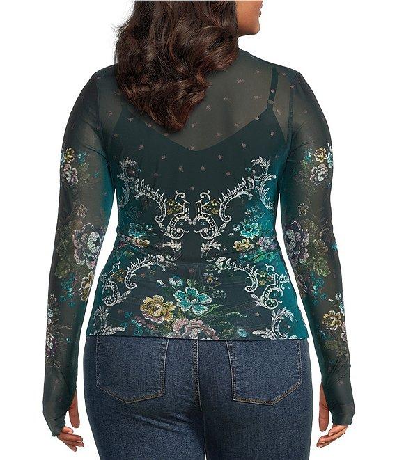 AFRM Plus Size Kaylee Baroque Floral Print Crew Neck Long Sleeve Mesh Top