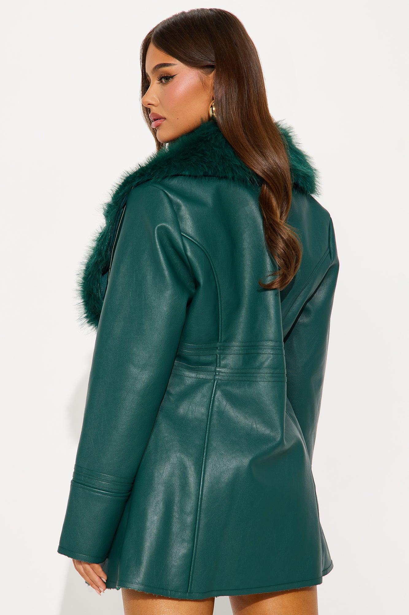 After Hour Faux Leather Coat - Hunter Female
