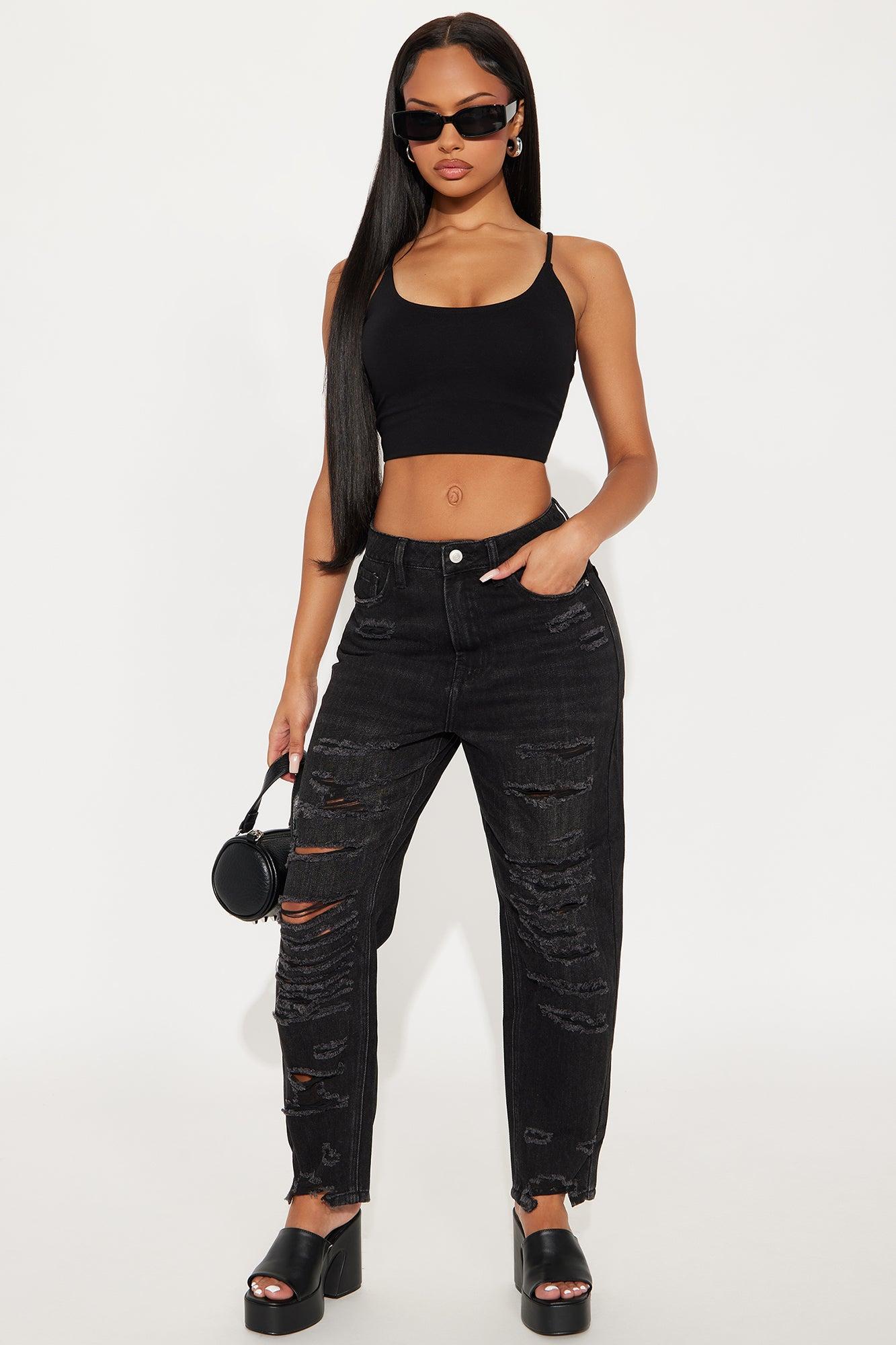 After Party High Waist Destroyed Mom Jeans - Black Female