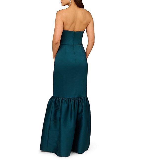 Aidan Mattox Strapless Bow Ruffle Bottom Gown