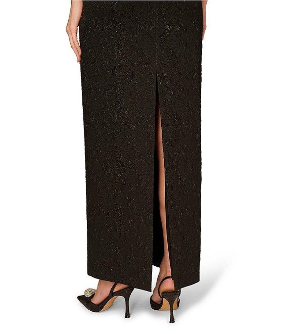 From Aidan Mattox, this dress features: Jacquard fabrication Sheath silhouette One-shoulder neckline Short sleeves Zip back closure Approx. 61" length Polyester Dry clean Imported.