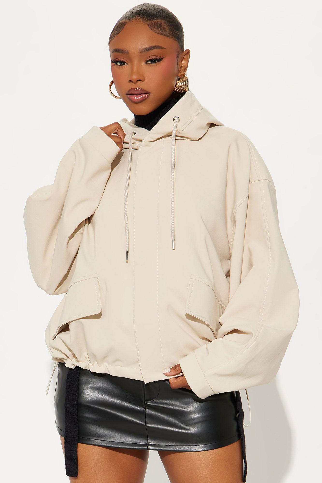 Available In Black, Cognac And Sand. Windbreaker Jacket Hooded Long Ruched Sleeves Button And Zipper Closure Drawstrings Flap Pockets Fully Lined Shell: 76% Rayon 20% Nylon 4% Spandex Lining: 100% Polyester Imported California Proposition 65WARNING: Cancer and Reproductive Harm - www.P65Warnings.ca.gov.