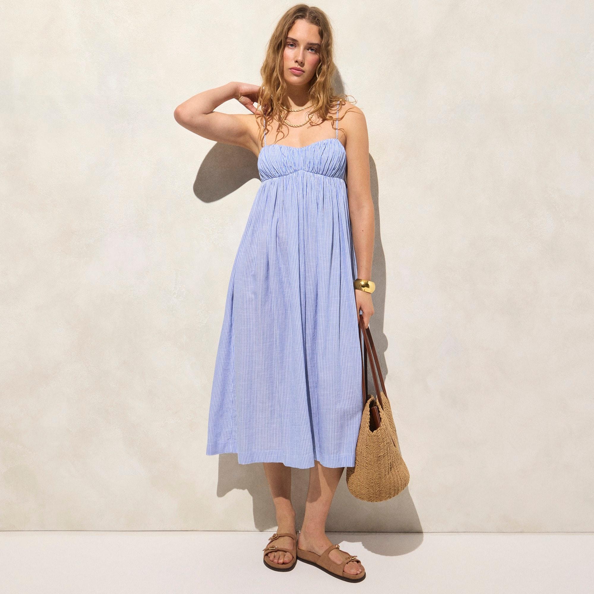 Airy gauze empire-waist midi dress in stripe