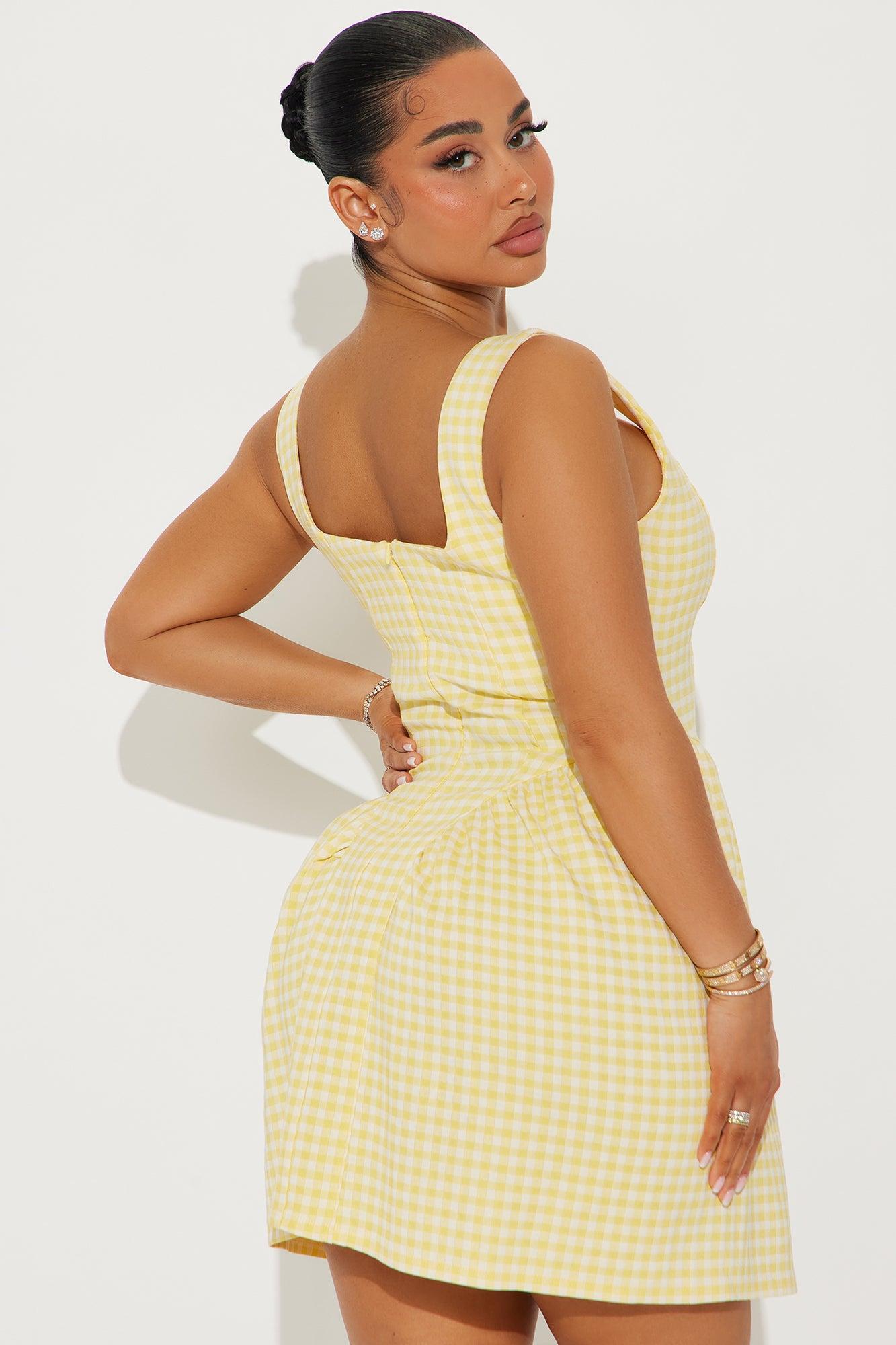 Alaina Gingham Mini Dress - Yellow