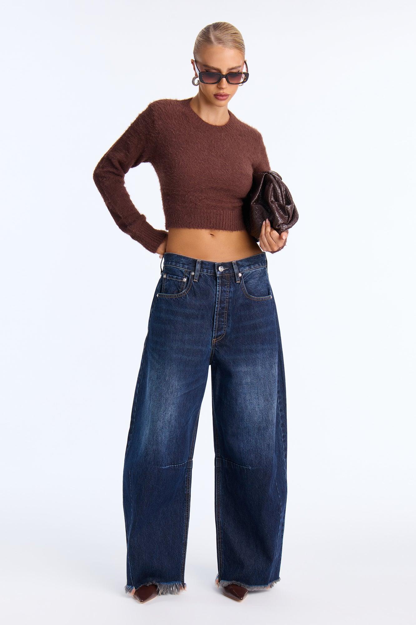 Alayna Crew Neck Fuzzy Sweater - Brown Female