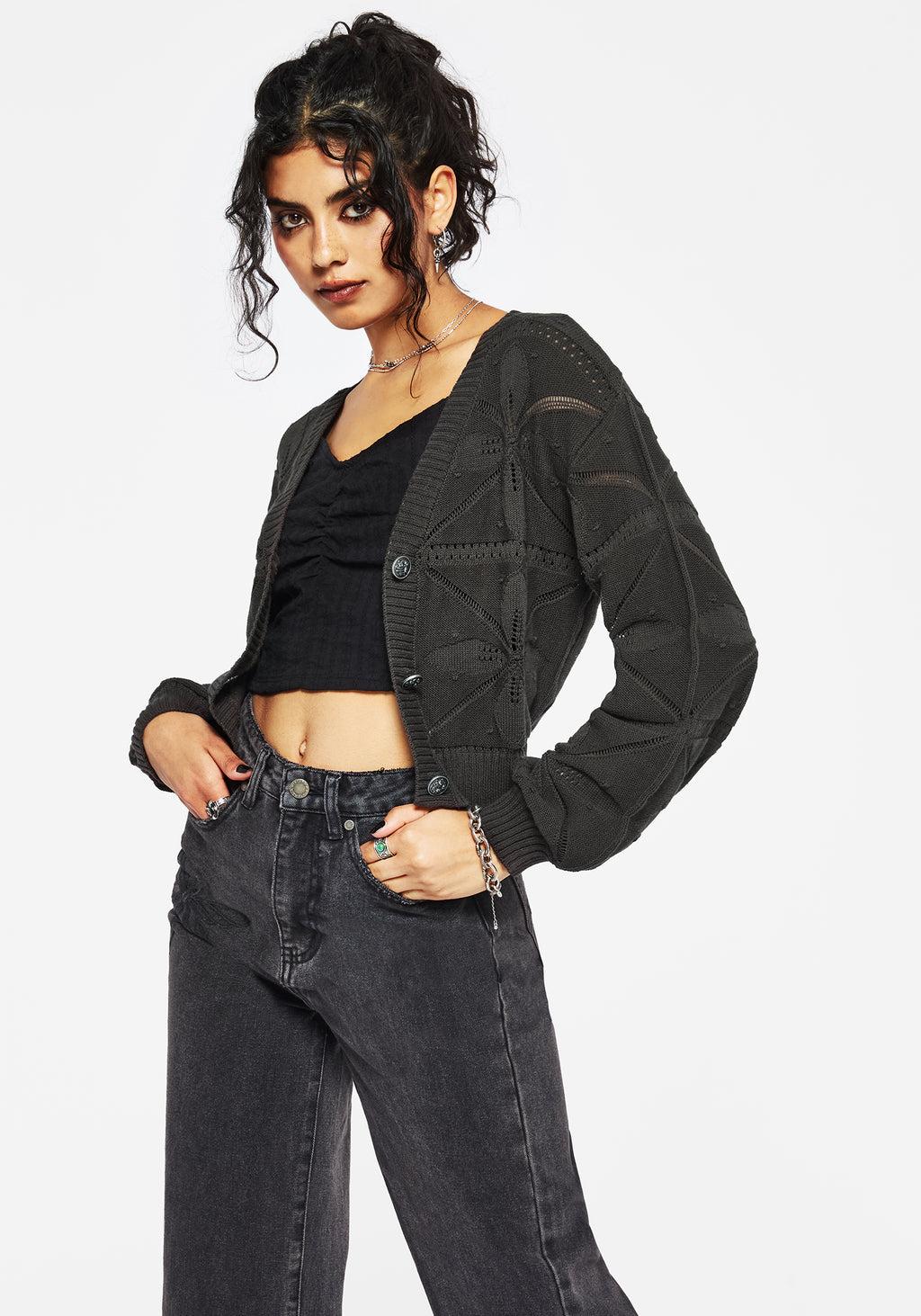 Alda Floral Pointelle Balloon Sleeve Knit Cardigan