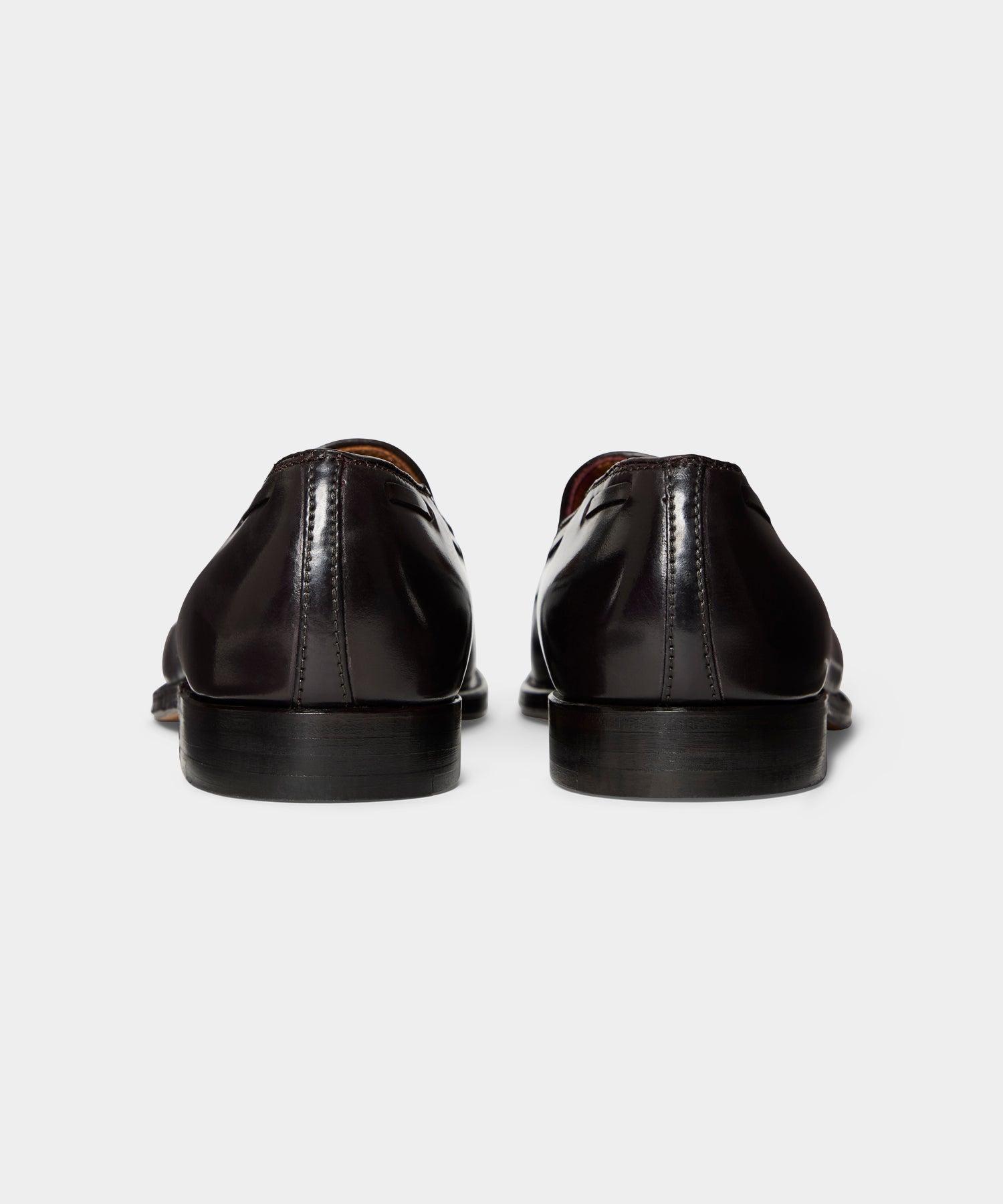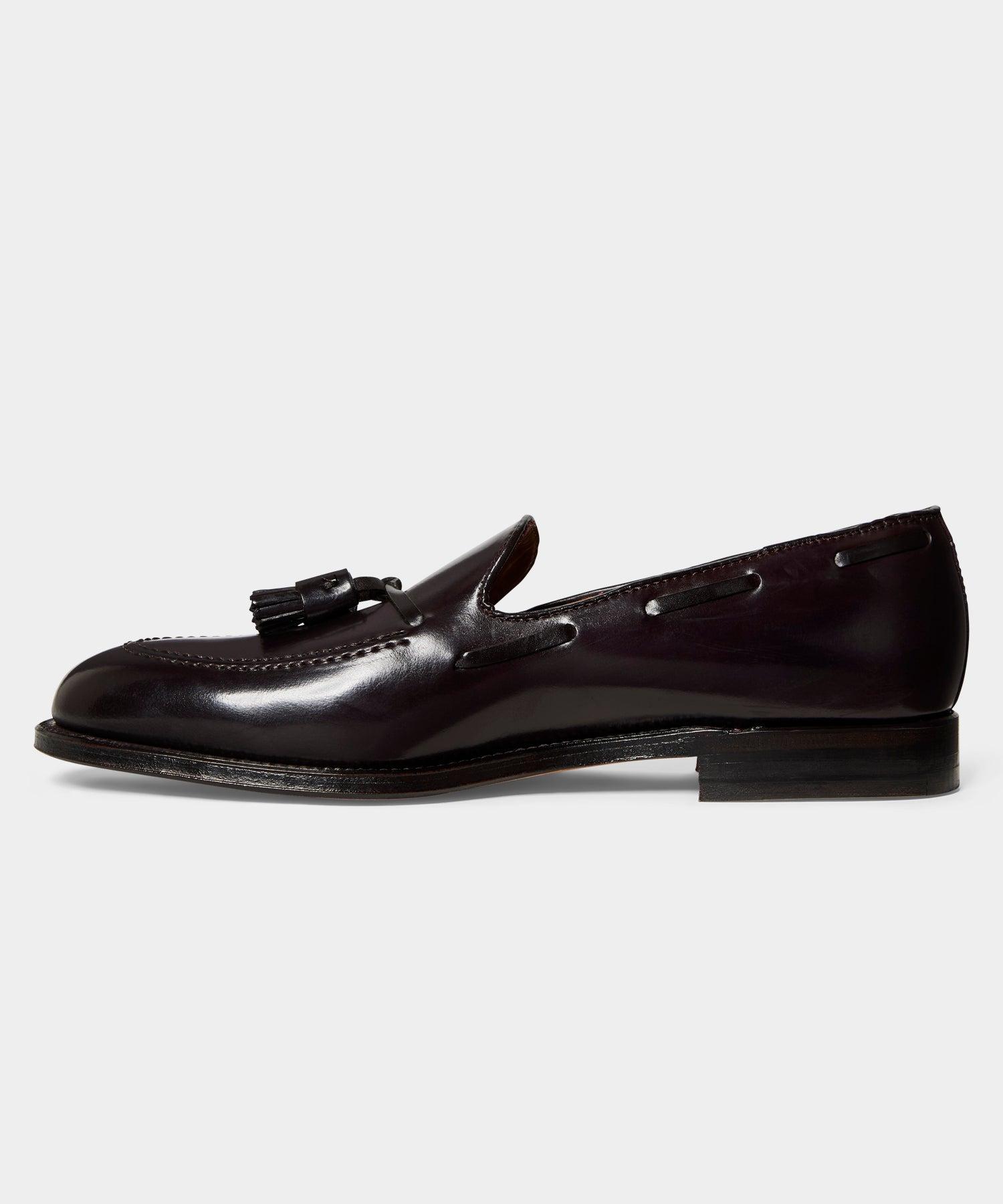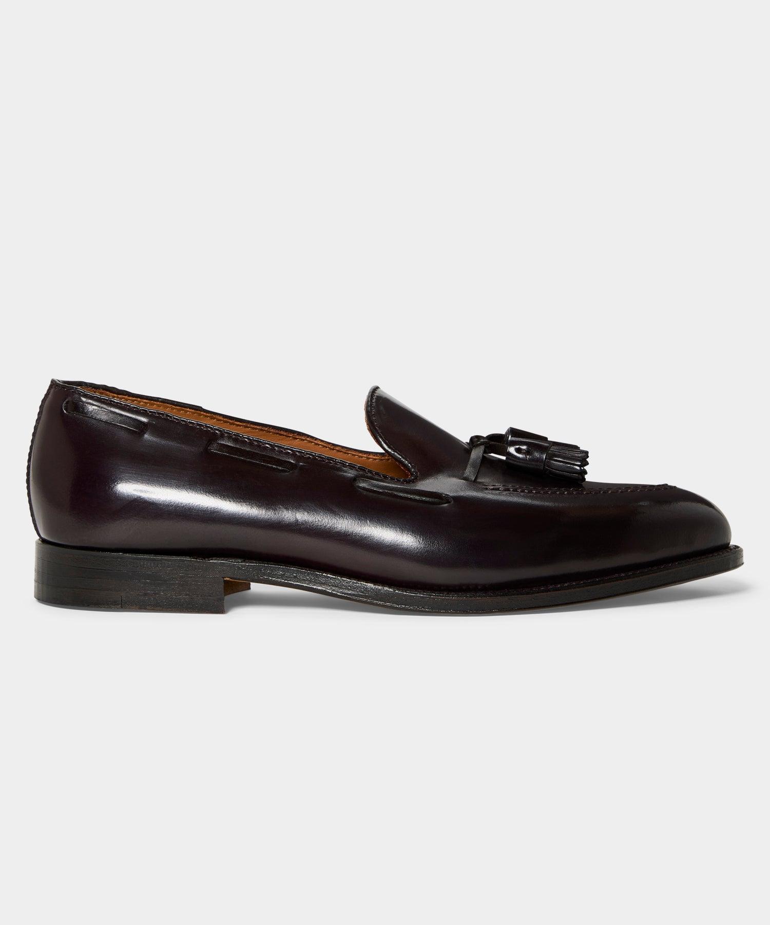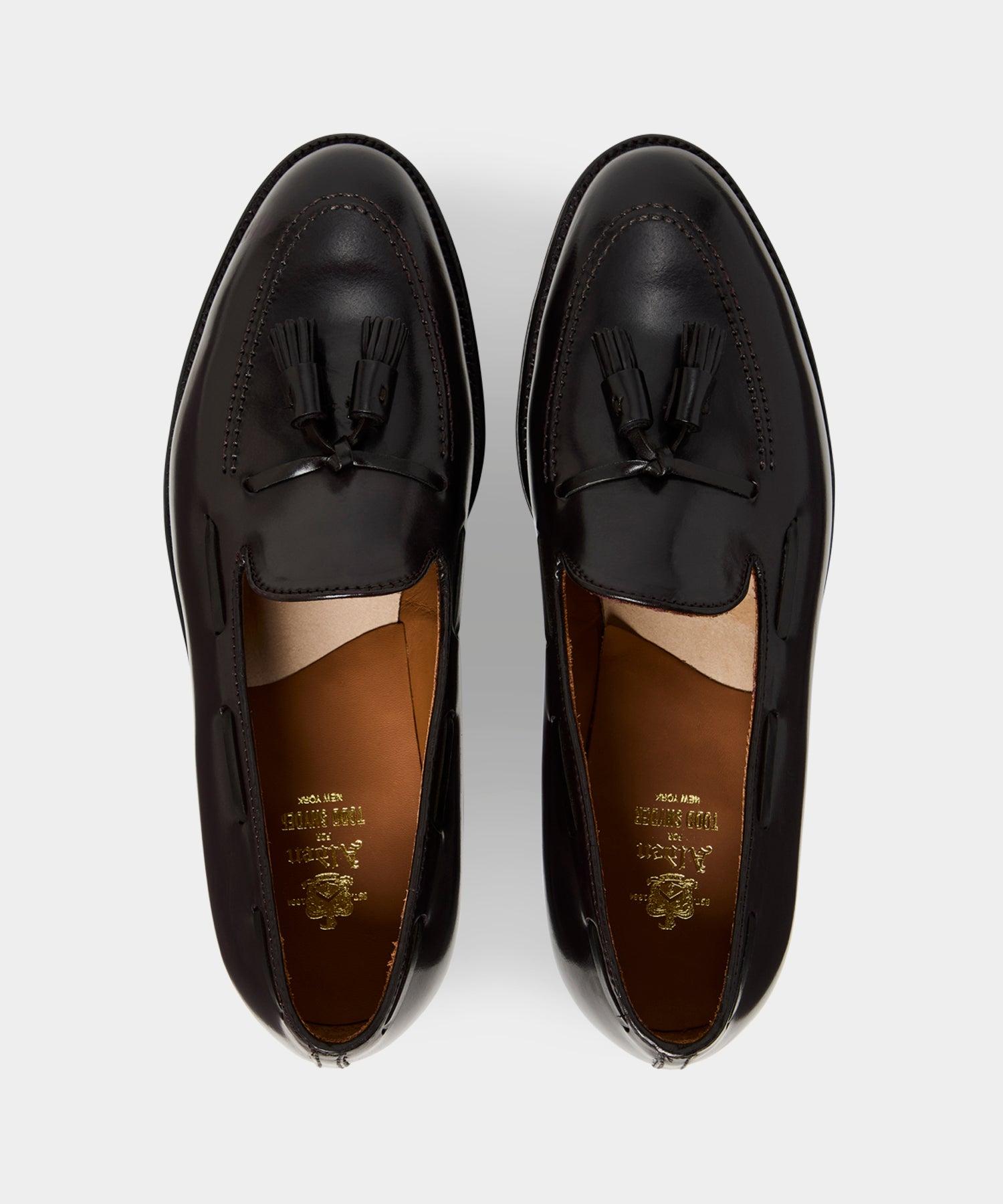 The original tassel moccasin often copied, never equaled. Available here in Genuine Black Shell Cordovan leather. Using the centuries-old method of pure vegetable tanning and hand finishing, the single tannery still producing genuine shell cordovan today is indeed practicing a rare art. The final patina is also a lengthy finishing procedure achieved by years of know how at the Alden factory in handling this very special material. Leather upper, leather outsole, vegetable tanned leather insole 270 degree goodyear welt, Aberdeen last Made in the U.S.A. Style 563 * This item can only be shipped within the United States.