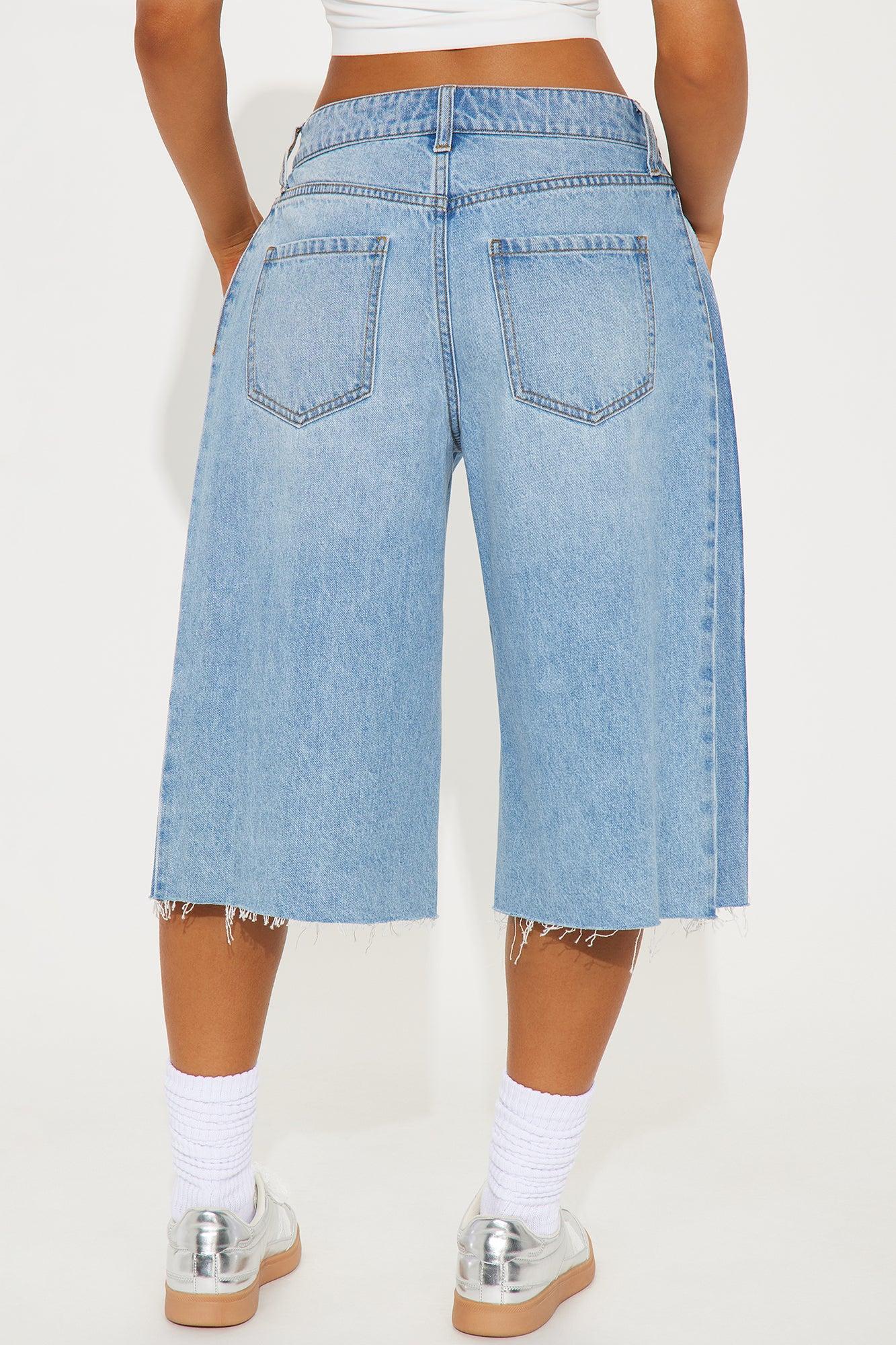 Available In Dark Wash And Light Wash. Denim Short 5 Pocket Raw Hem Pleated 11" High Rise 15" Inseam Non Stretch Disclaimer: Due To The Specialized Wash Process, Each Garment Is Unique. 100% Cotton Imported