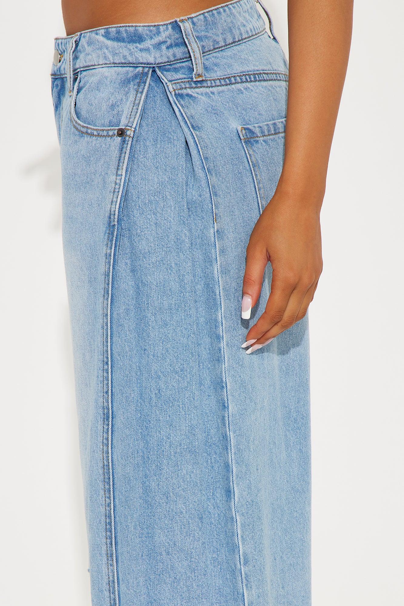 Aleksa Pleated Non Stretch Denim Jorts - Light Wash