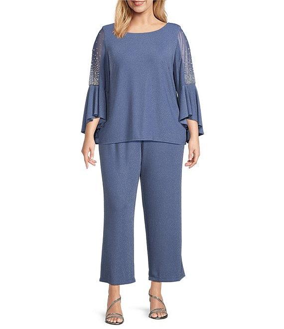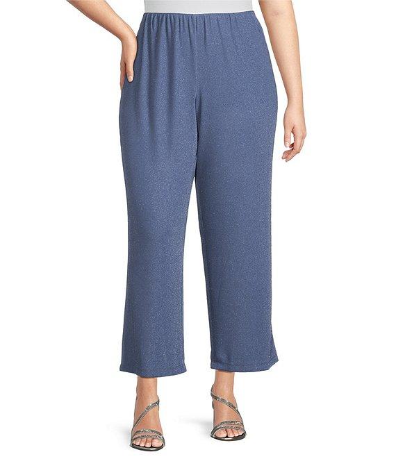 Alex Evenings Plus Size Metallic Knit Straight Leg Pants
