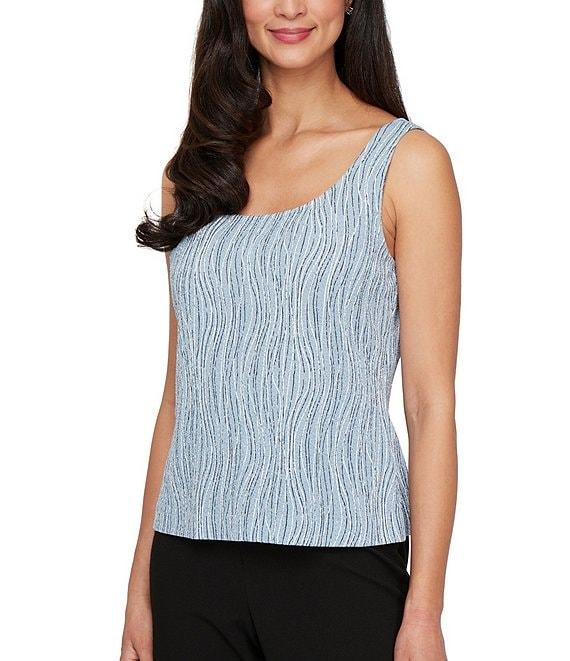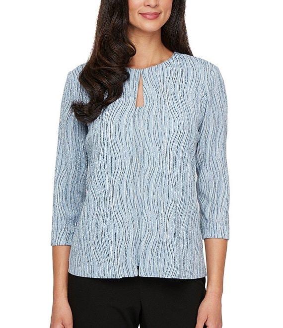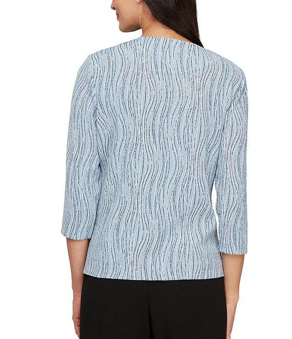 From Alex Evenings, this twinset features: Jacket: Jacquard knit fabrication Open front neckline 3/4 sleeves Lined Print Hook front closure Approx. 23.2" in center back length Polyester/spandex Hand wash Top: Jacquard knit fabrication Scoop neckline Sleeveless Print Pullover construction Polyester/spandex Hand wash Imported.