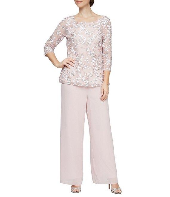 From Alex Evenings, these pants feature:chiffon fabricationwide legpull-on constructionapprox. 30" inseam; 41.5" outseampolyestermachine wash/tumble dry Imported.