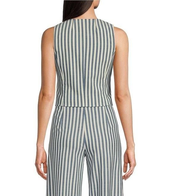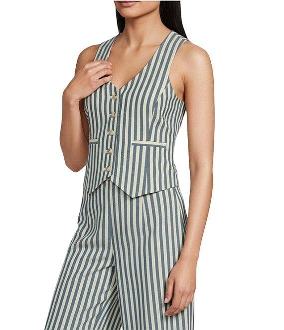 Alex Marie Brooke V-Neck Stretch Linen Blend Button Front Coordinating Vest