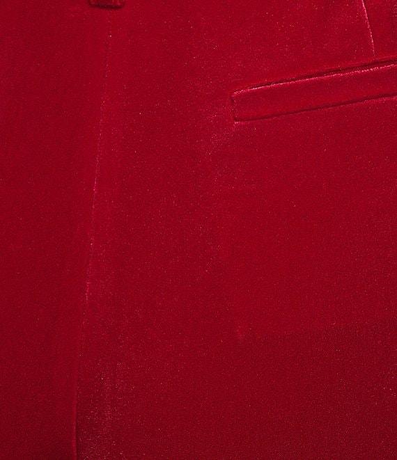 From Alex Marie, these pants feature: Stretch velvet fabrication Full-length silhouette Fly zipper closure at center front with hook & bar 2 front side pockets, 2 back pockets Approx. 31 inseam; 9 front rise; 11 1/2 leg opening Polyester/elastane; lining: polyester/elastane Machine wash cold, line dry Imported.