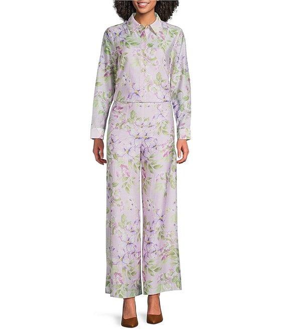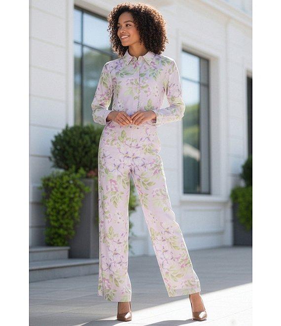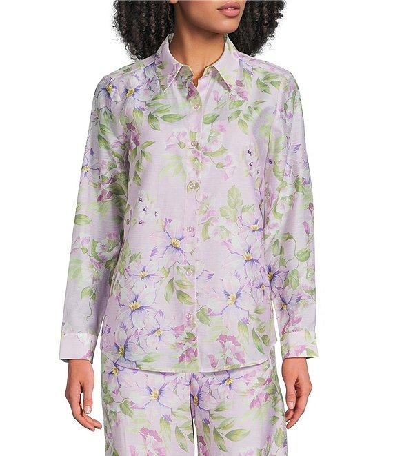 From Alex Marie, this blouse features: Printed linen blend fabrication Lilac floral pattern Collar neckline Long sleeves Button front closure Approx. 28" length Rayon/nylon/linen Lining: rayon Machine wash cold Imported. Dillard's Exclusive.