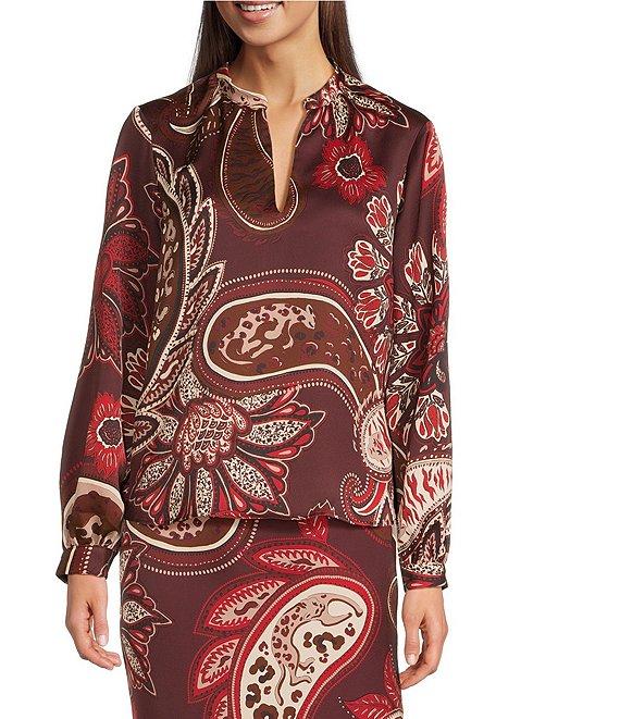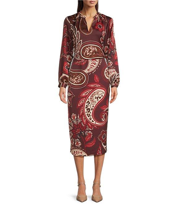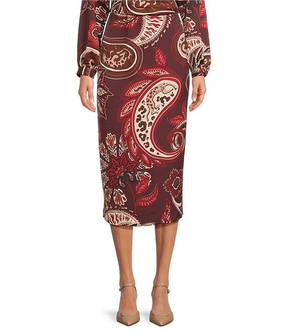Alex Marie Olivia Coordinating Printed Paisley Satin Midi Pencil Skirt