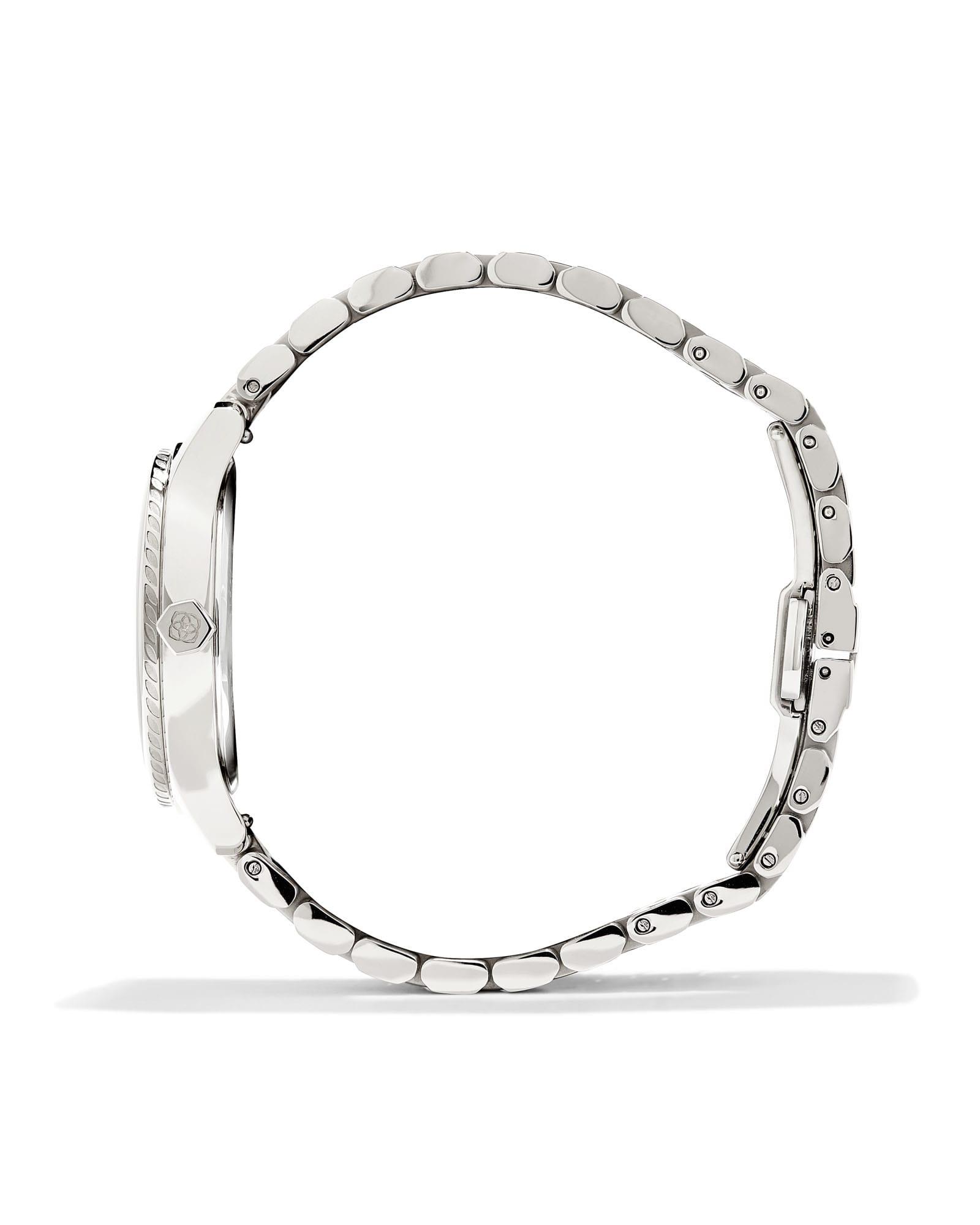 From Kendra Scott, the Womens Alex Three Hand Stainless Steel Bracelet Watch features:Stainless steel case and braceletBlack mother of pearl dialButterfly clasp closureThree hand movementCase size approx. : 35mmWater resistance: 3ATMImported.
