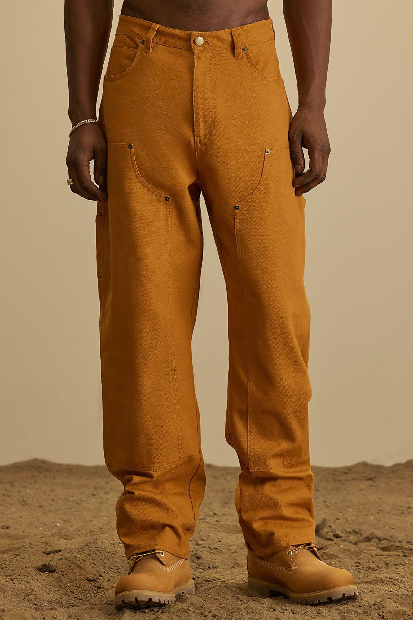 Alexander Double Knee Straight Utility Canvas Pants - Tan