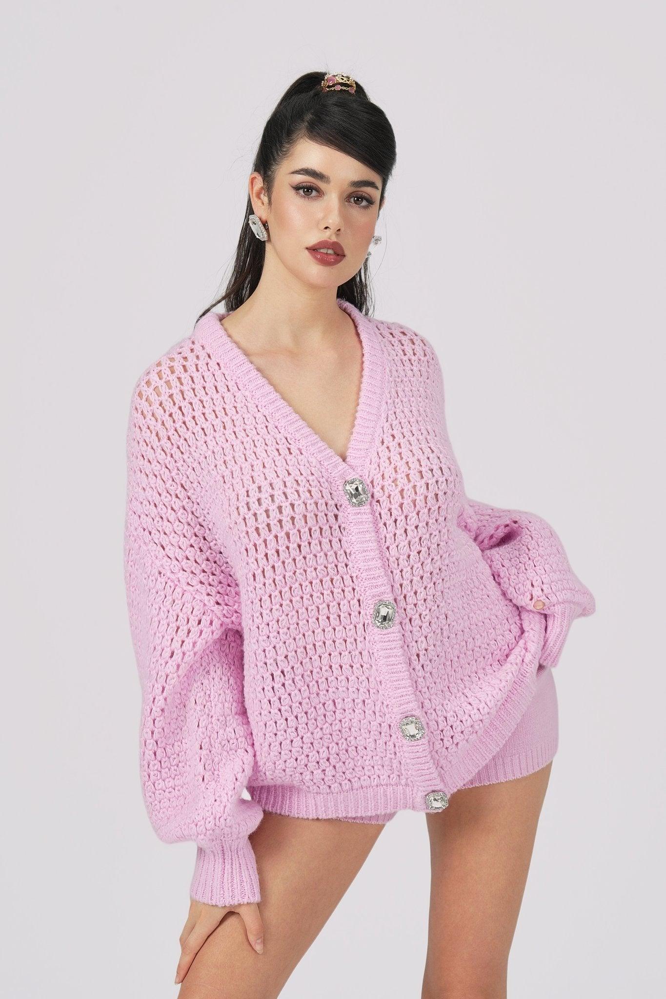 The Alexis Scarf Set combines cozy warmth with timeless elegance, crafted from a blend of 4.5-count Icelandic yarn and mohair for a soft, lightweight, and warm feel. Featuring a loose, wide-fit diamond-button cardigan and a matching scarf, this set brings effortless sophistication to your winter wardrobe. Features: Material: Blended 4.5-count Icelandic yarn and mohair for softness, warmth, and durability. Cardigan Design: Loose, wide fit with a hollow-knit texture for a light, layered look that flatters all body types. Placket Details: Double-layer pit strip finish with sparkling square diamond buttons for a refined touch. Cuffs & Hem: Structured design for a balanced, three-dimensional silhouette. Matching Scarf: Crafted with the same yarn and hollow-knit texture, completing the elegant, coordinated look. Colors: Available in black for classic charm, white for softness, and pink for a sweet, romantic vibe. Styling: Perfect for showcasing warmth and elegance in the chilly winter months.