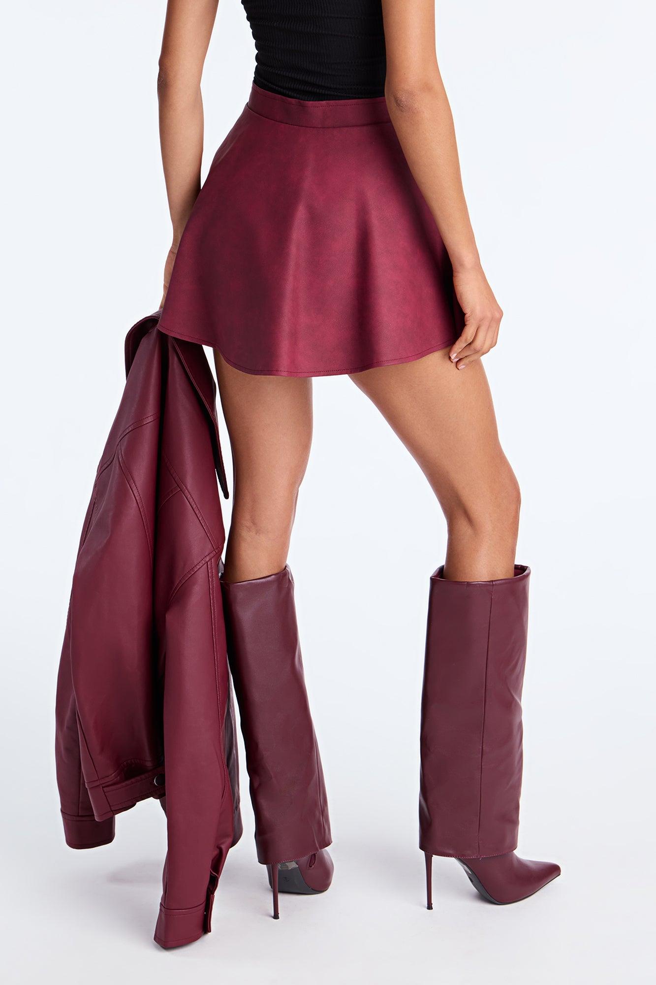 Alexus Faux Leather Mini Skater Skort - Burgundy Female