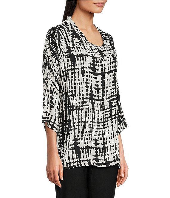 Ali Miles Abstract Brush Stroke Cowl Neck 3/4 Dolman Sleeve Tunic