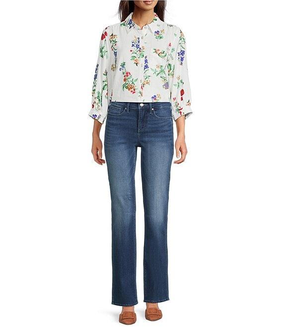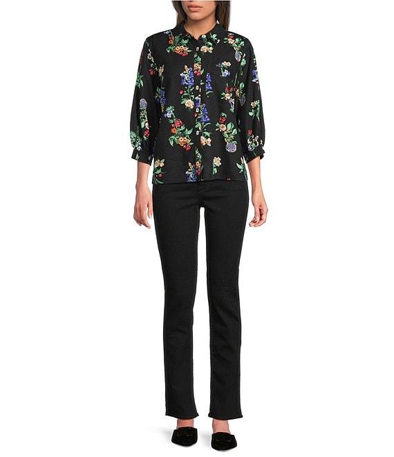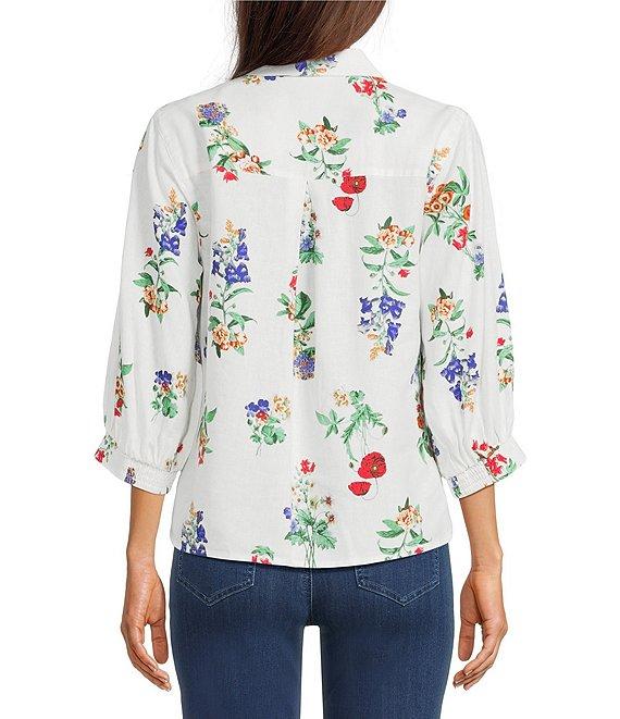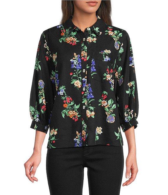 From Ali Miles, this tunic features: Woven fabrication Point collar Elbow length sleeves with elastic cuffs All-over floral multi print Chest pocket Straight hem with curved sides Button-front closure Approx. 26" length Linen/rayon Machine wash/tumble dry low Imported.