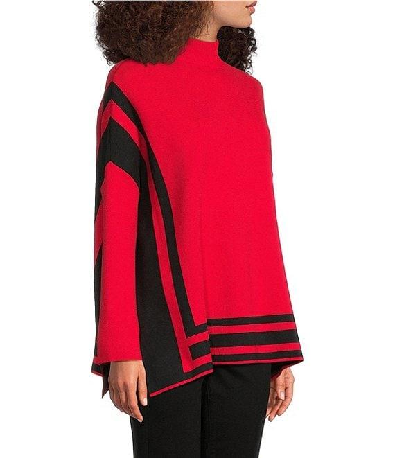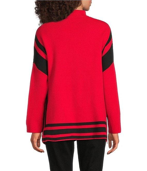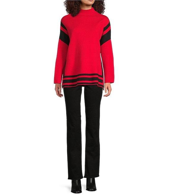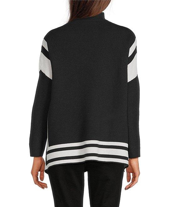 Ali Miles Knit Color Block Trimmed Mock Neck Long Sleeve Pullover