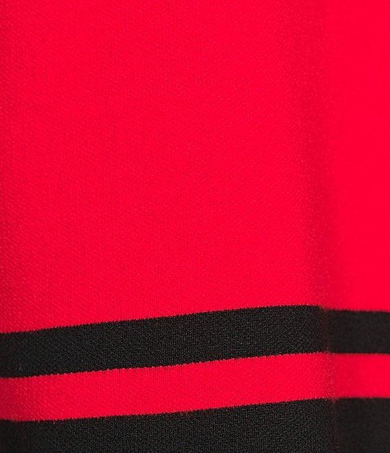 From Ali miles, this pullover features; Knit fabrication Mock neckline Long sleeves Solid with border color block Straight with side vents hem Pullover construction Approx. 27" length Rayon/polyester/nylon Machine wash/tumble dry Imported.