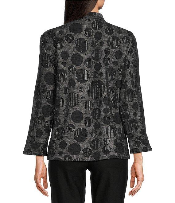 Ali Miles Knit Jacquard All Over Dots Stand Collar Long Sleeve Button Front Tunic