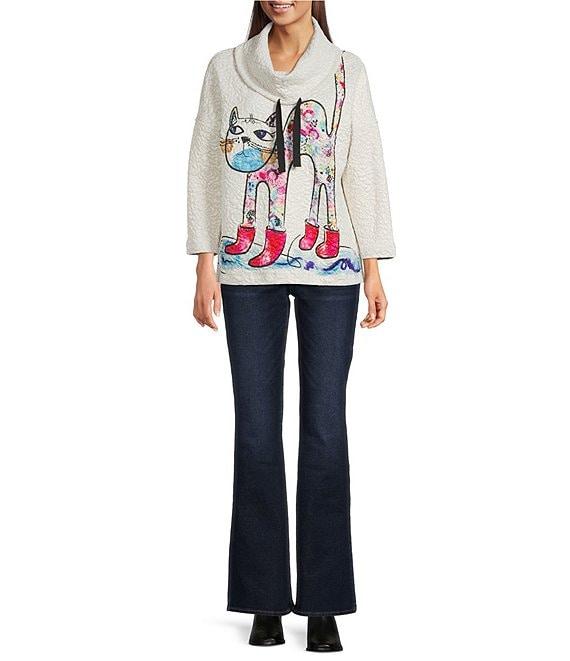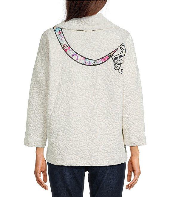Ali Miles Novelty Animal Cat Print Quilted Knit Popover Tunic