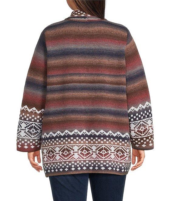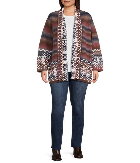 Ali Miles Plus Size Abstract Border Print 3/4 Sleeve Open-Front Cardigan