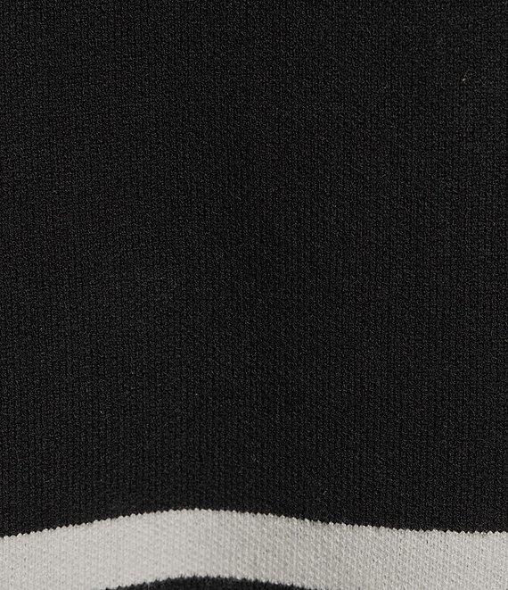 From Ali Miles Plus, this pullover features: Knit fabrication Mock neckline 3/4 sleeves Solid with border color block Straight with side vents hem Pullover construction Approx. 28" length Rayon/polyester/nylon Machine wash/tumble dry Imported.