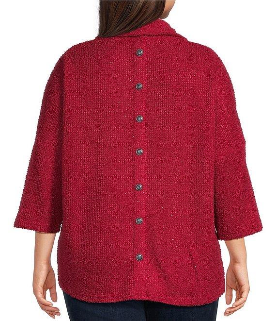 From Ali Miles Plus, this tunic features Knit fabrication Cowl neckline 3/4 dolman sleeves Back button detail Slight hi-low hemline Pullover construction Approx. 27" center front length; 29" center back length Polyester/spandex Machine wash/tumble dry Imported.