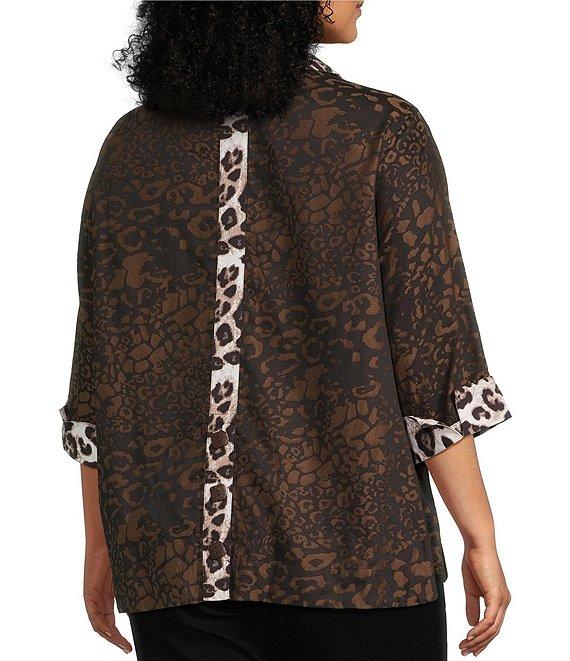 From Ali Miles Plus, this tunic features: Woven fabrication Point collar 3/4 cuff sleeves Animal print Contrast trim at collar and sleeves Back button detail Hi-low hemline with side vents Pullover construction Approx. 28" front length, 29" back length Cotton Machine wash cold/tumble dry low Imported.