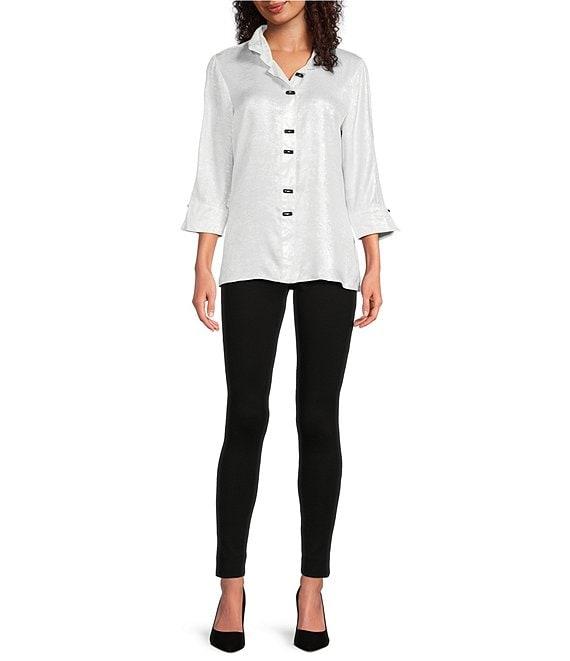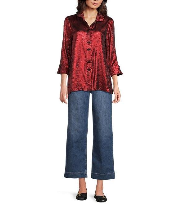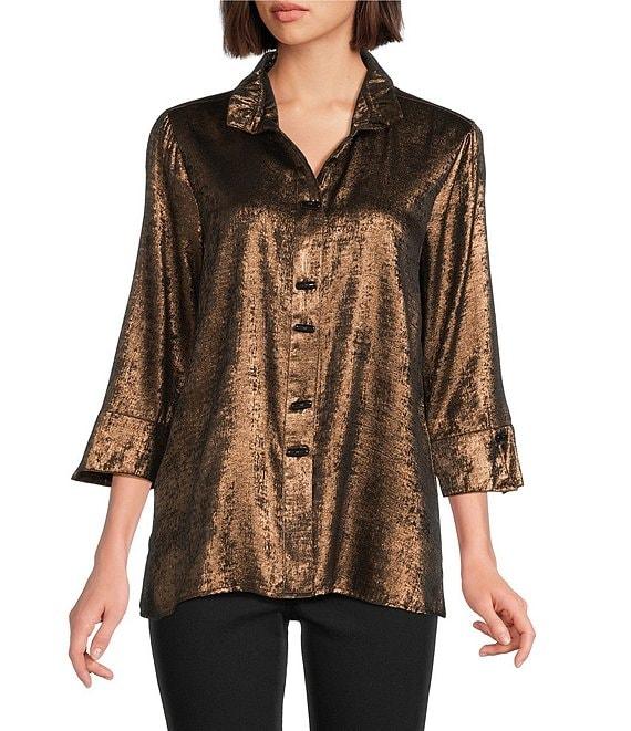 Ali Miles Shimmer Wire Collar 3/4 Sleeve Button Front Tunic