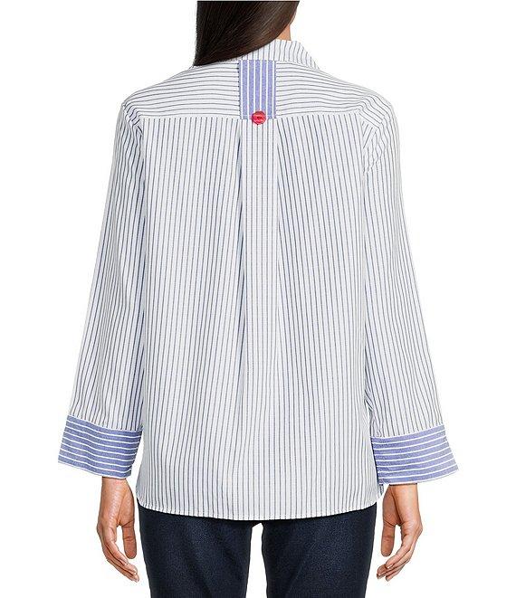 Ali Miles Yarn Dye Stripe Point Collar 3/4 Sleeves Hi-Low Hem Tunic
