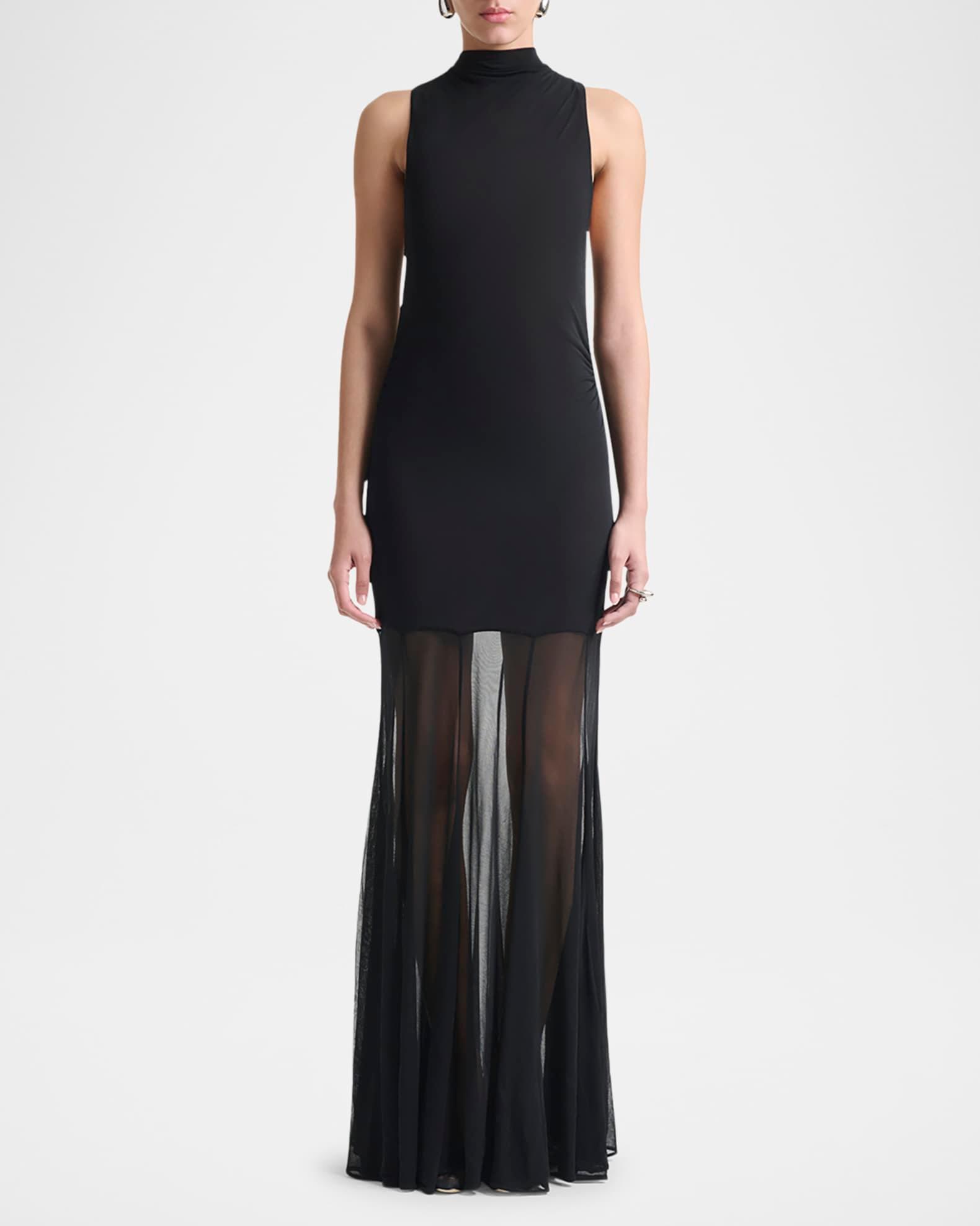 Alicka Turtleneck Sleeveless Sheer Maxi Dress