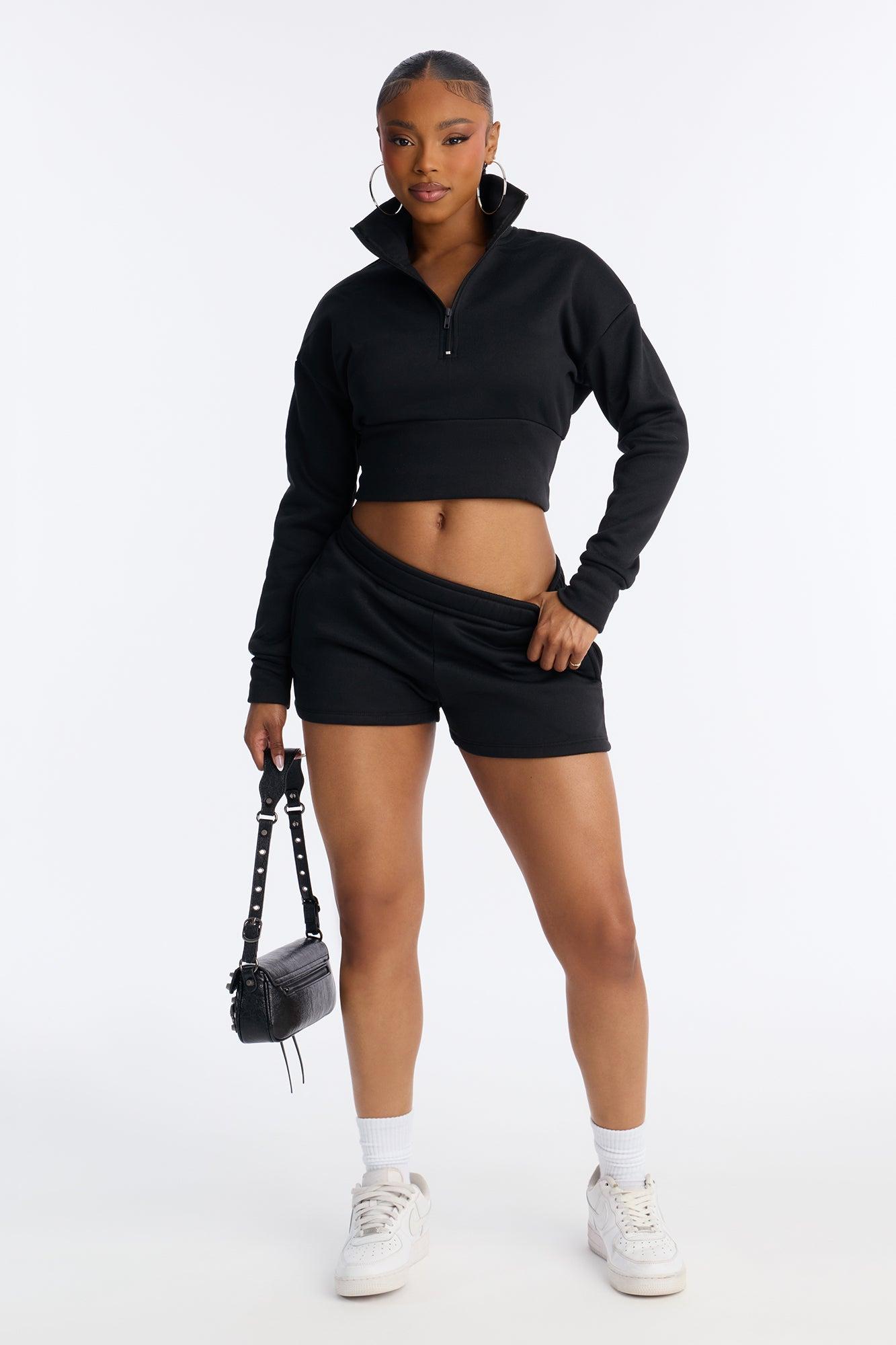 Available In Black, Heather Grey, Red And Yellow. 2 Piece Ensemble Quarter Zip Sweatshirt And Short Set Stretch Drawstring Elastic Waistband Pockets Self : 100% Polyester Imported California Proposition 65WARNING: Cancer and Reproductive Harm - www.P65Warnings.ca.gov.