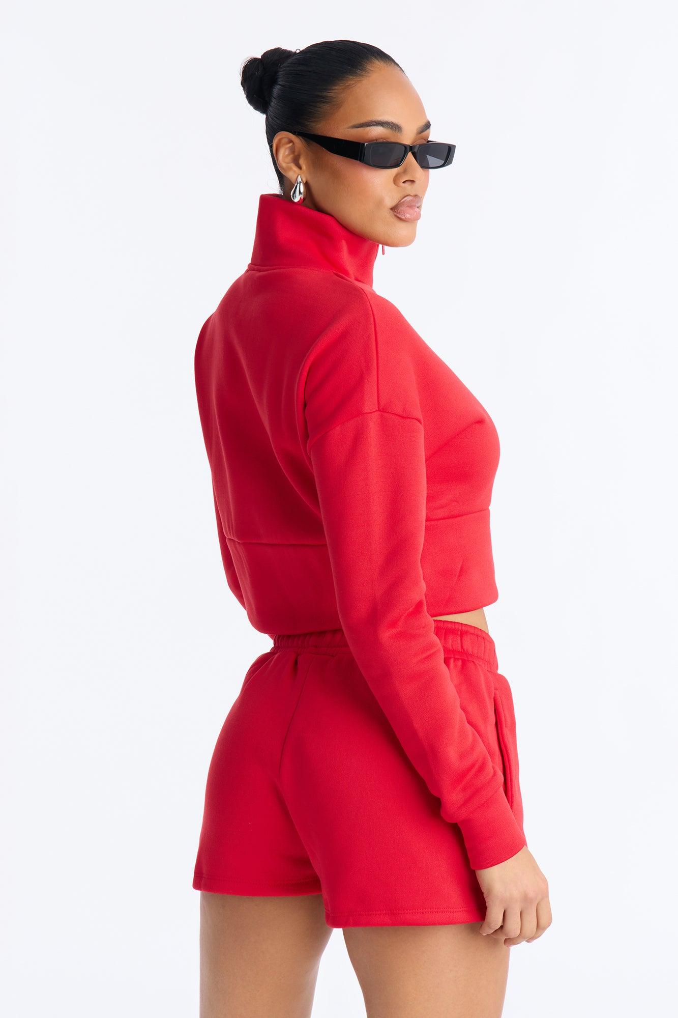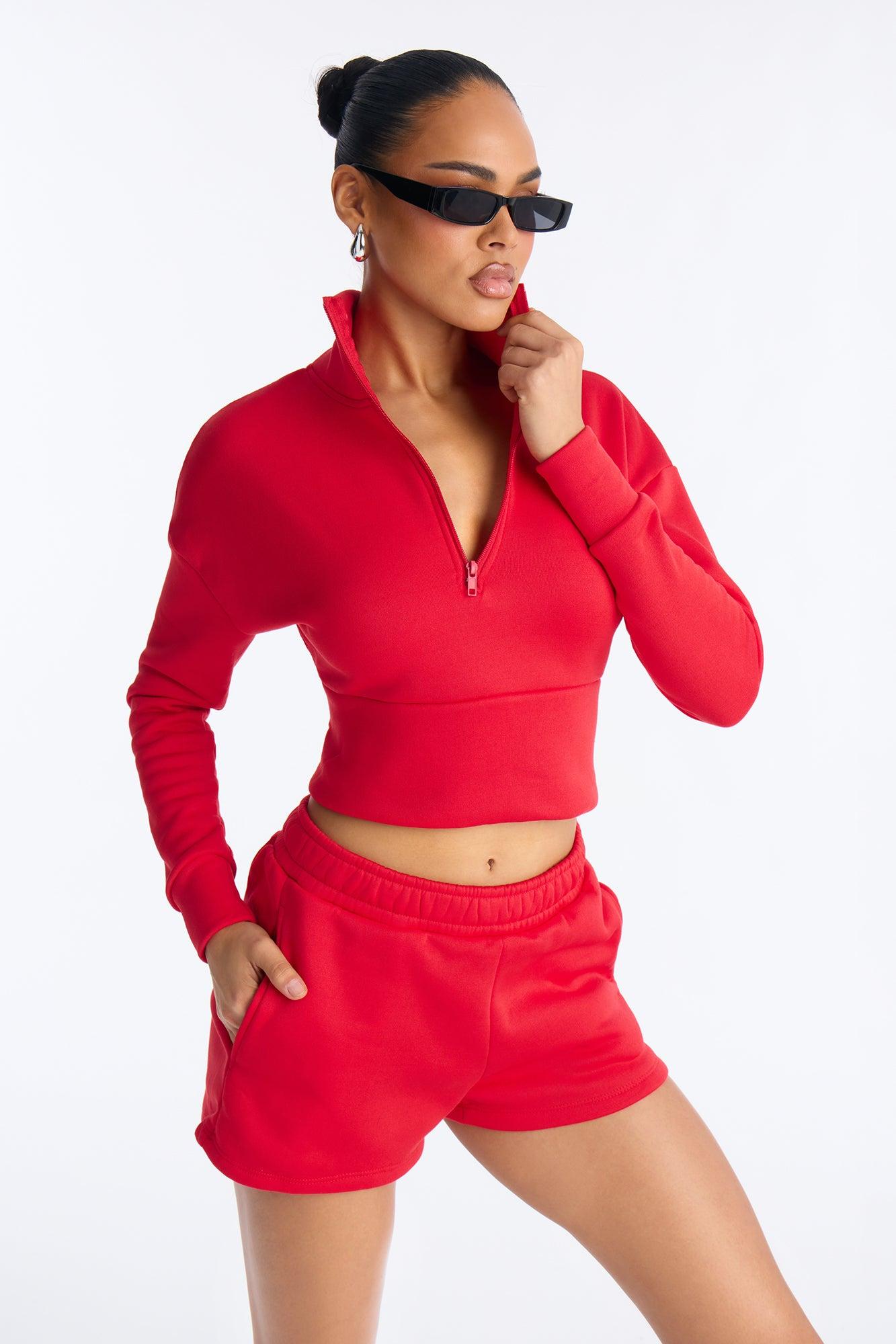 Available In Black, Heather Grey, Red And Yellow. 2 Piece Ensemble Quarter Zip Sweatshirt And Short Set Stretch Drawstring Elastic Waistband Pockets Self : 100% Polyester Imported California Proposition 65WARNING: Cancer and Reproductive Harm - www.P65Warnings.ca.gov.
