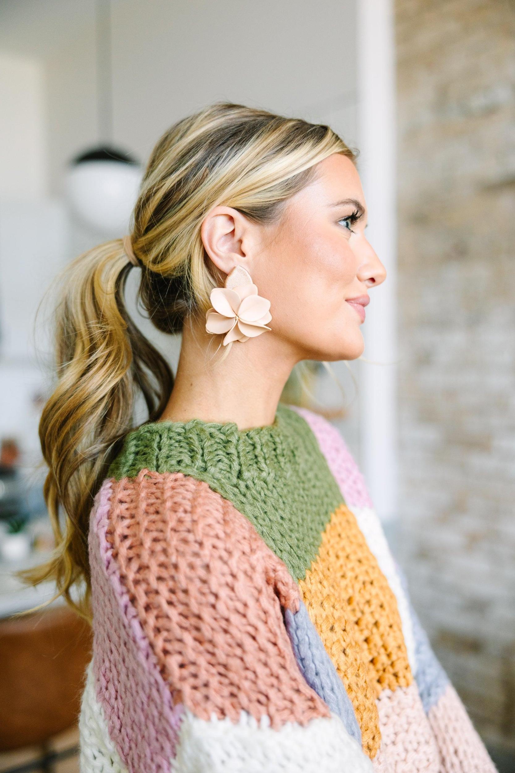 All For Fun Blush Pink Leather Flower Earring Female