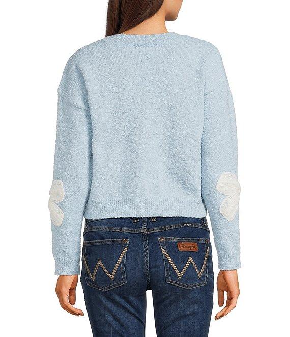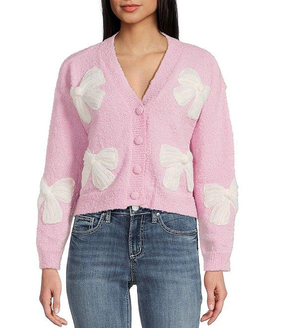All in Favor Long Sleeve V-Neck Bow Applique Cardigan