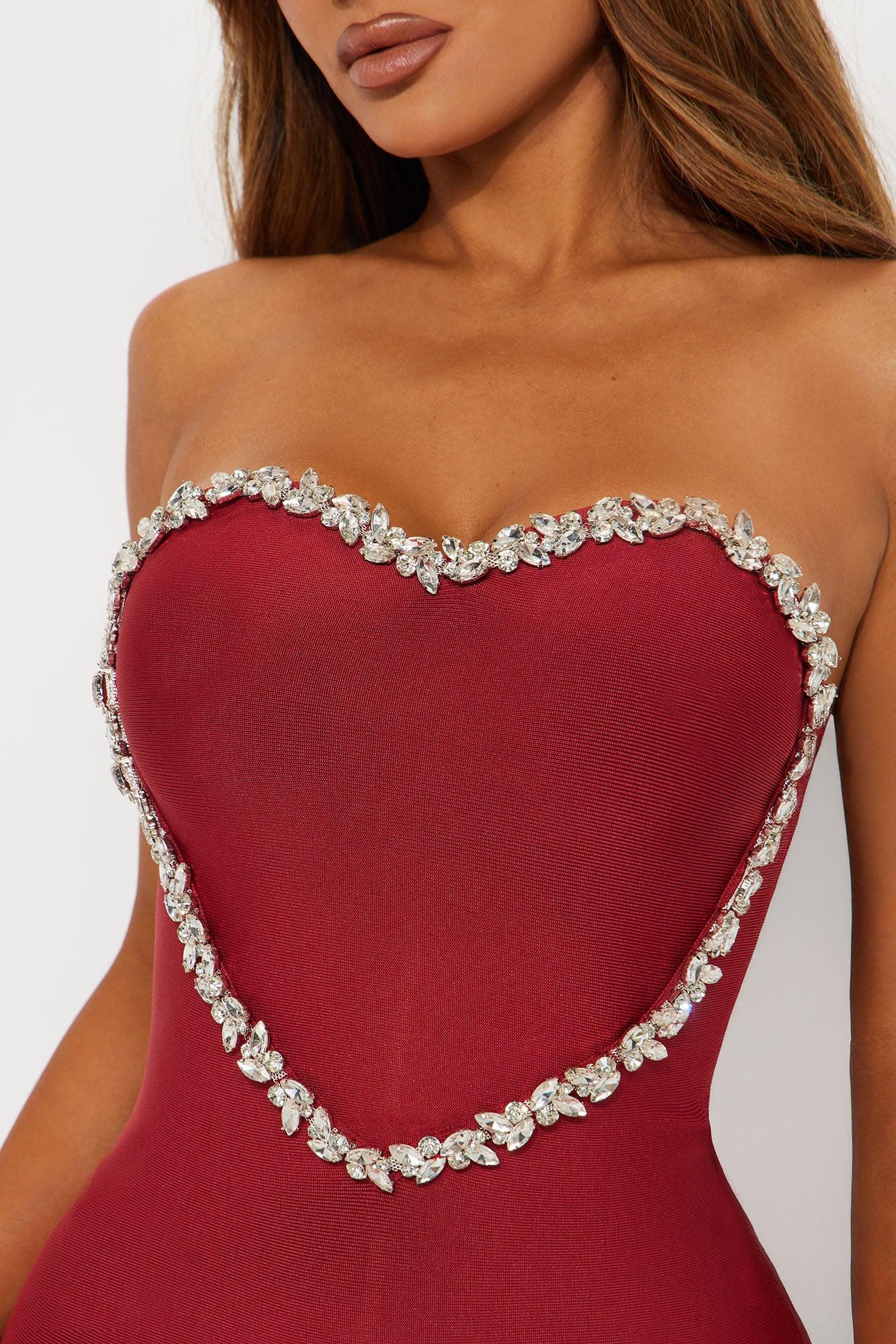 All My Love Rhinestone Bandage Mini Dress - Wine
